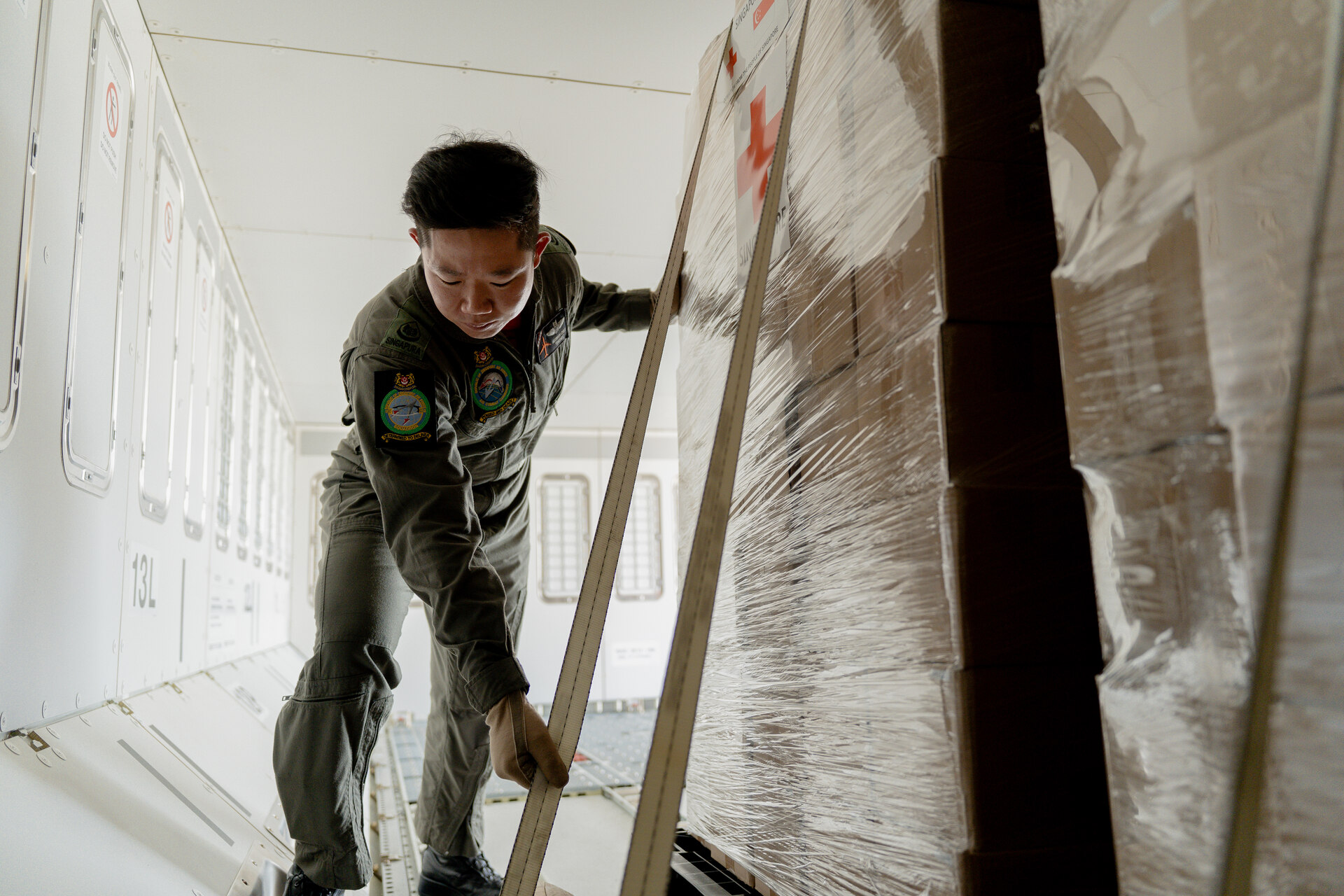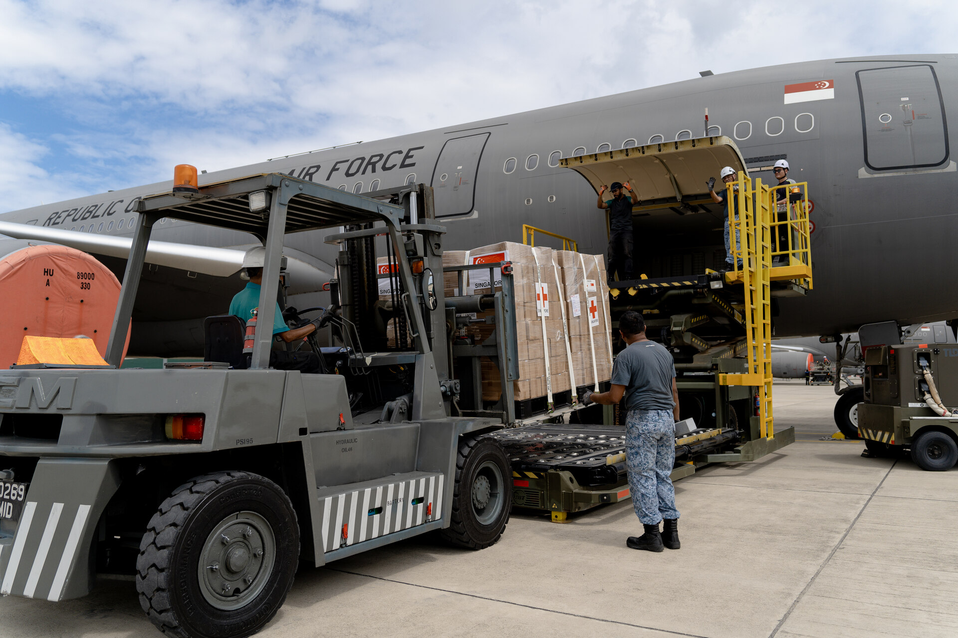 In the early hours of 30 Nov, a Republic of Singapore Air Force (RSAF) Multi-Role Tanker Transport (MRTT) aircraft took off from Changi Air Base (East) to Egypt, carrying life-saving supplies for civilians in Gaza.