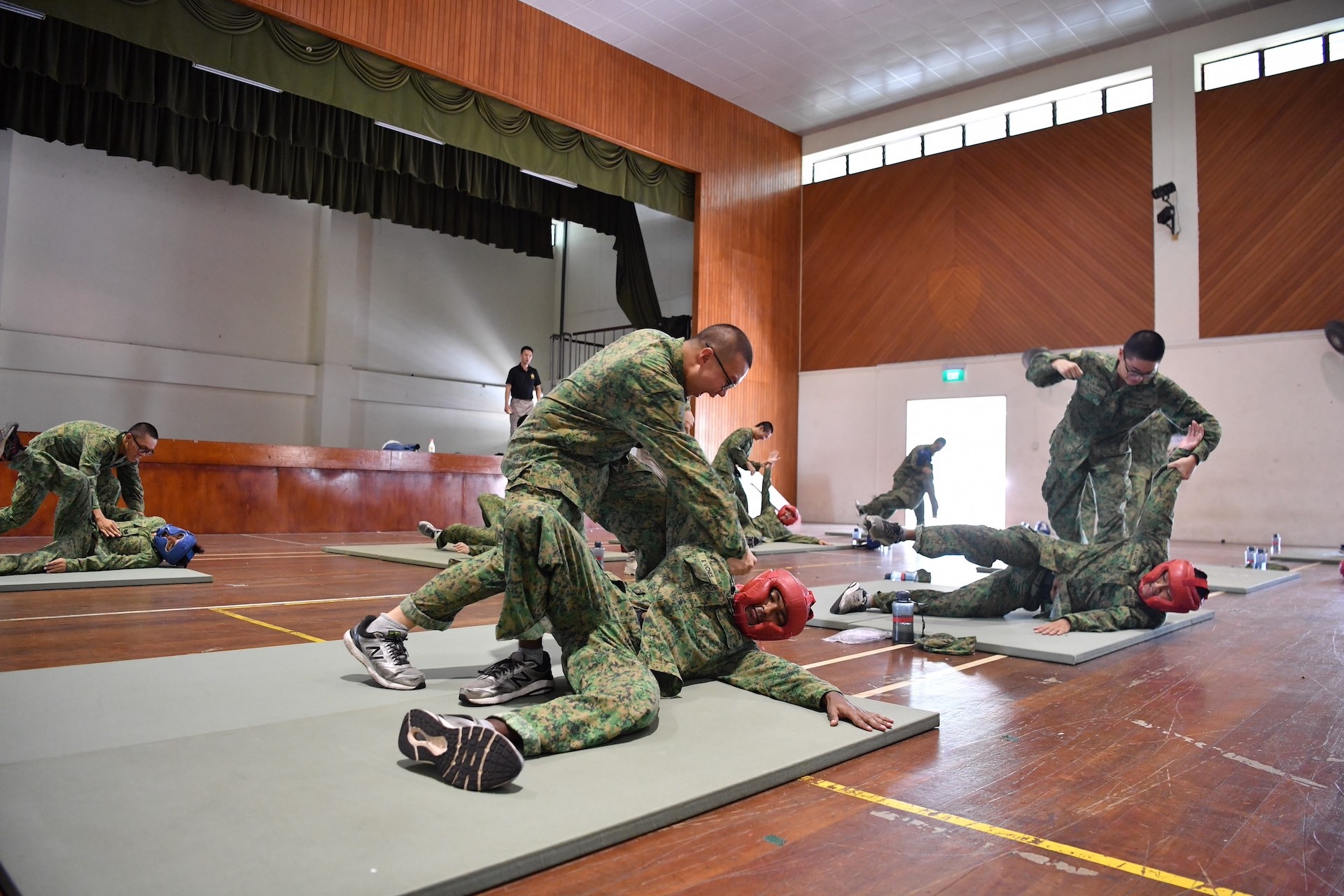 Soldiers go through Basic CCT at the Basic Military Training Centre, where they learn the basics of strikes and blocks. Some formations also go through Advanced CCT where they learn takedowns & defence against armed assailants.