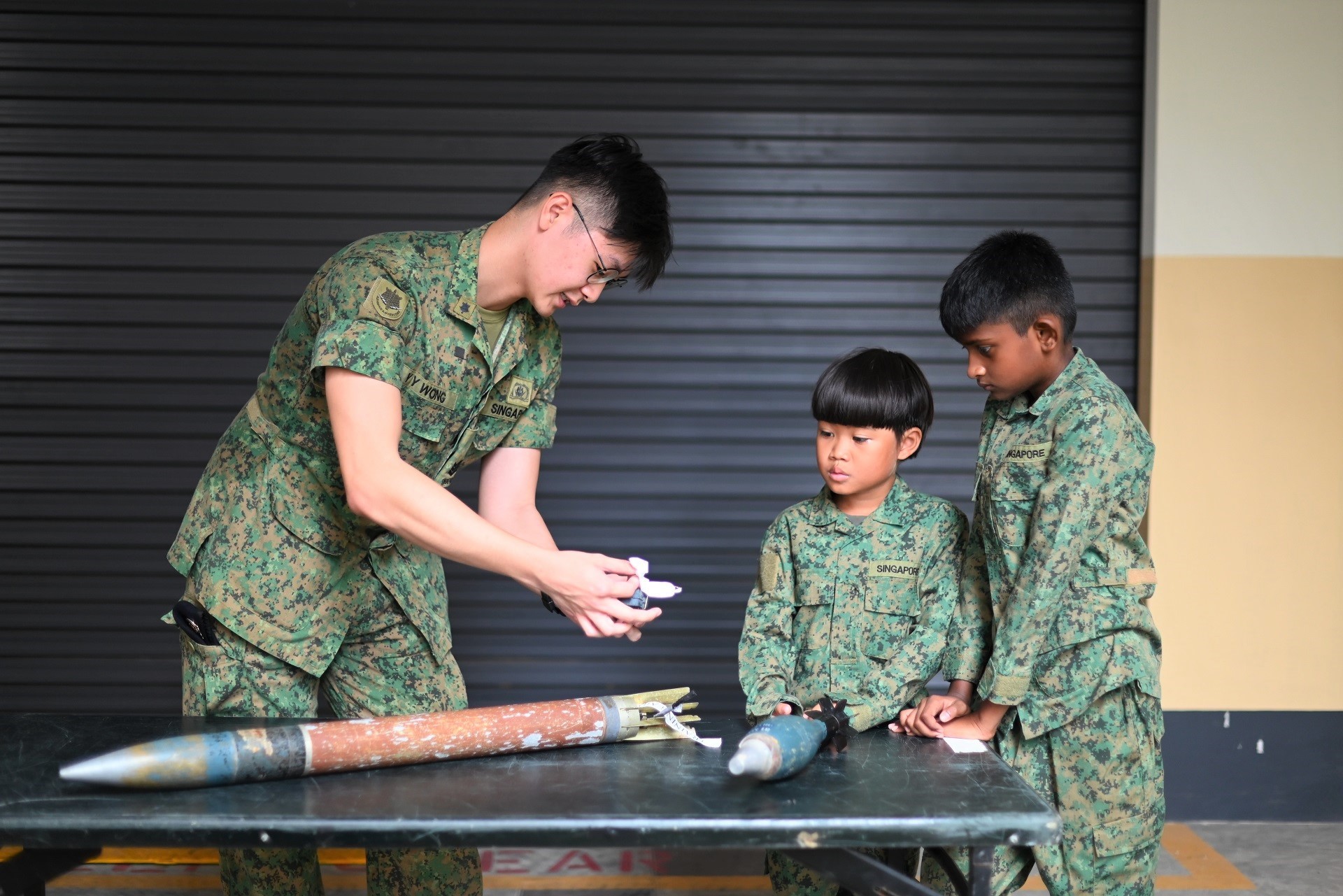Reuel Teo, 9 and Dharran Raj, 11, got the rare chance to visit the home of 36th Battalion, Singapore Combat Engineers (36 SCE) in October – where they went through a slice of the Explosive Ordnance Disposal (EOD) Vocational Obstacle Course (VOC), checked out (dummy) bombs and controlled a huge robot!