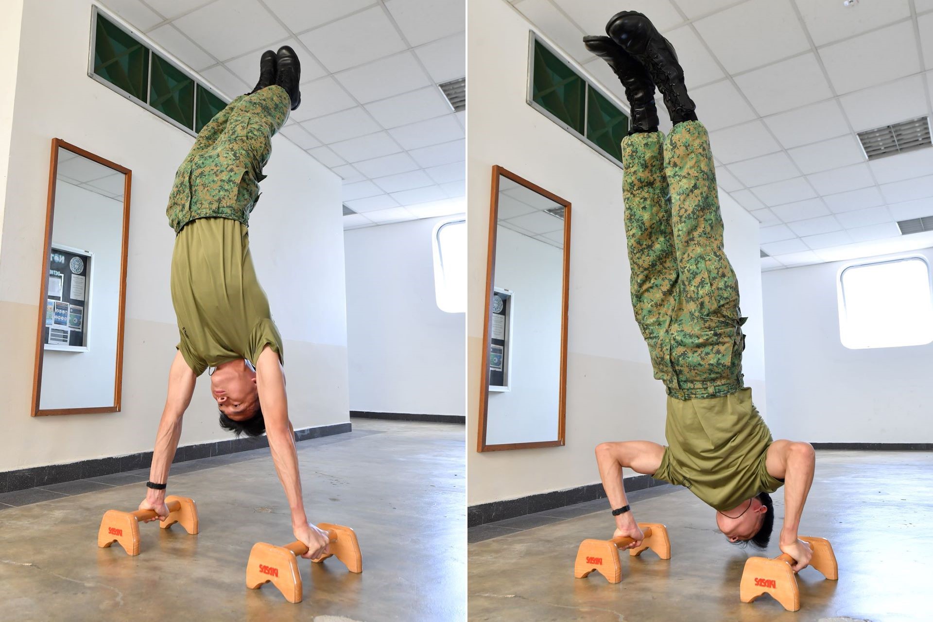 This was when his fellow troopers realised that they had a national gymnast in their midst.