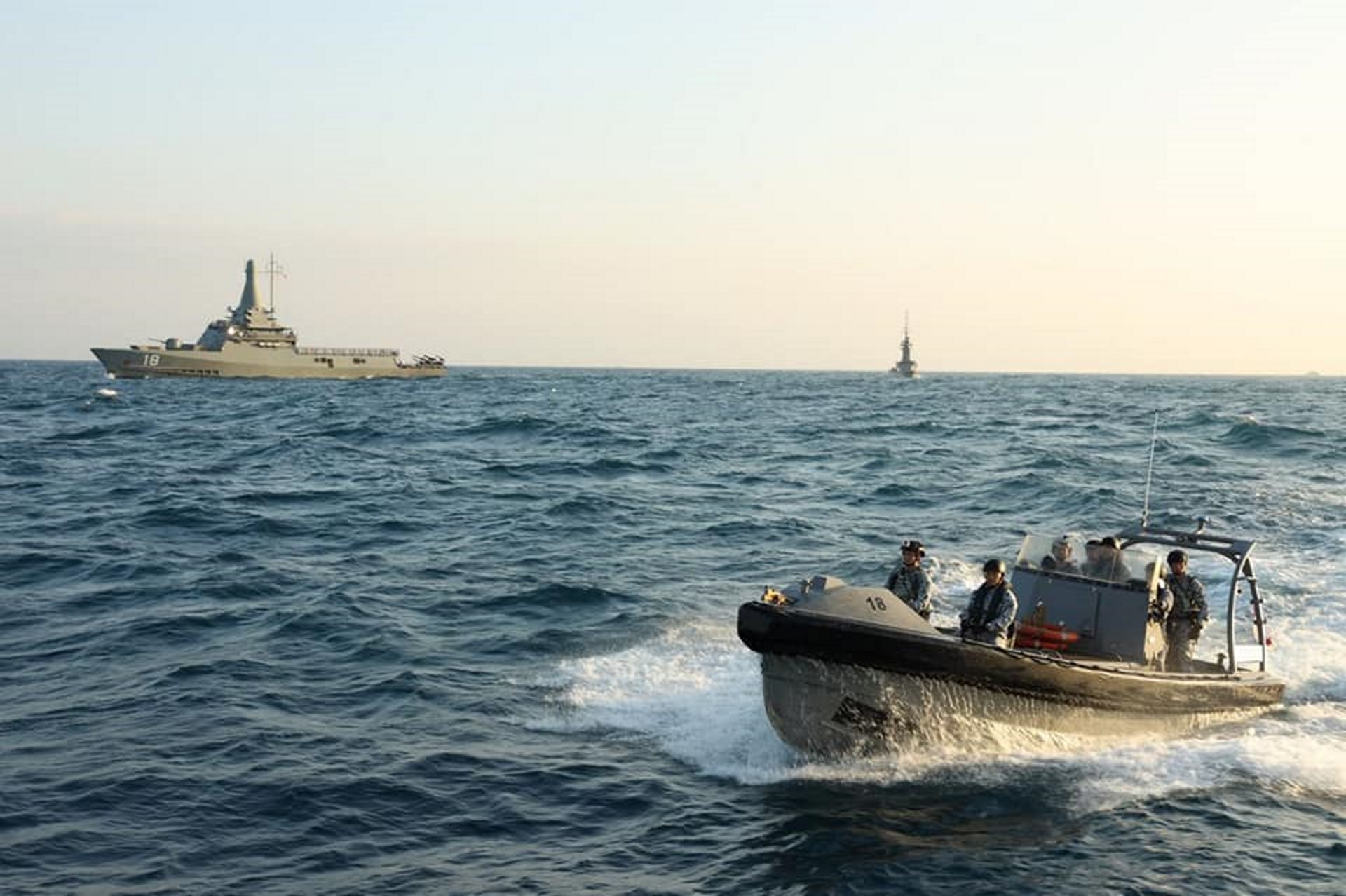 On the day of the exercise, the team had to cope with a challenging sea state as they approached the simulated commercial vessel on board a Rigid Hull Inflatable Boat.