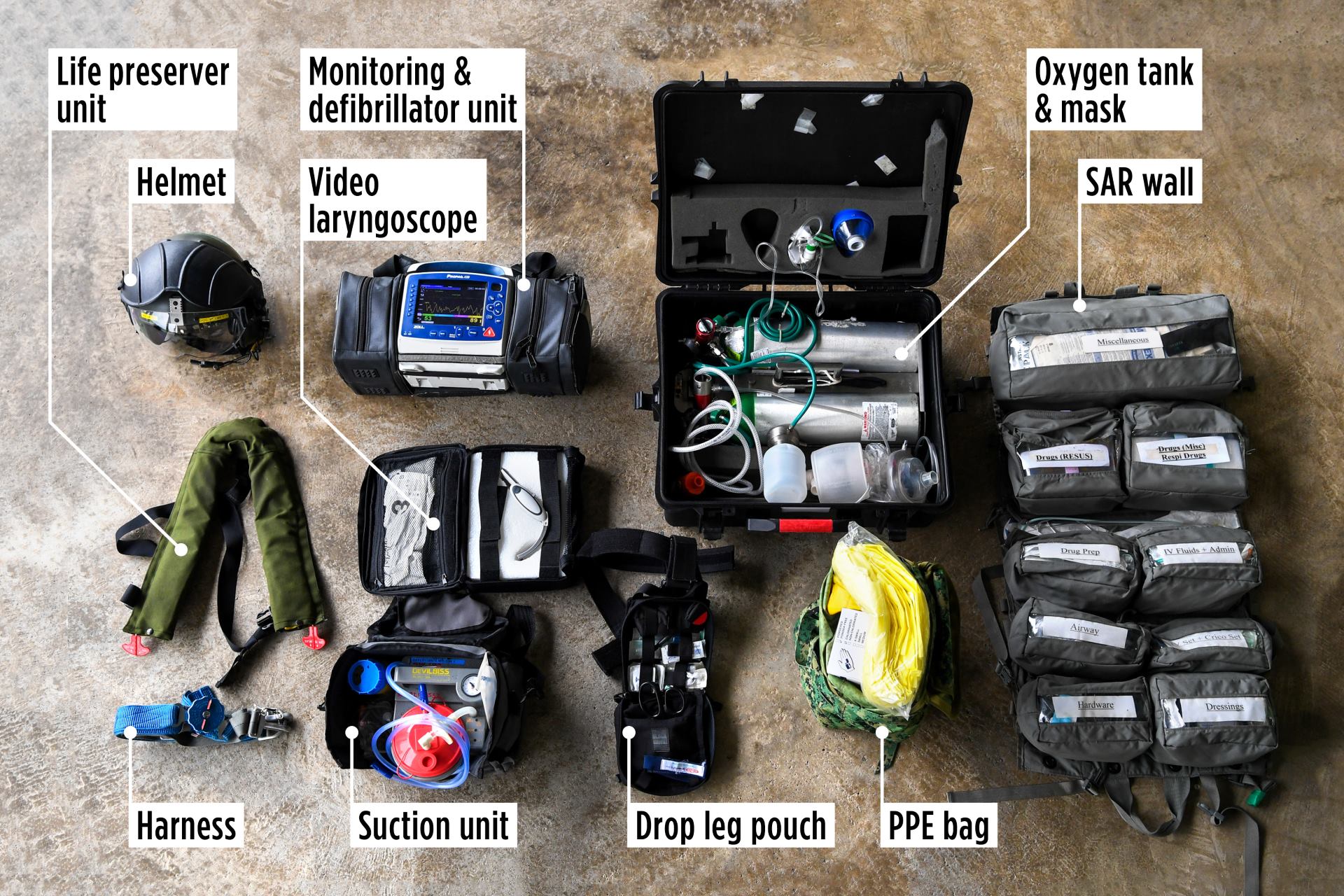 To provide quick-response critical care, she packs these 10 aircrew-related and medical equipment:
