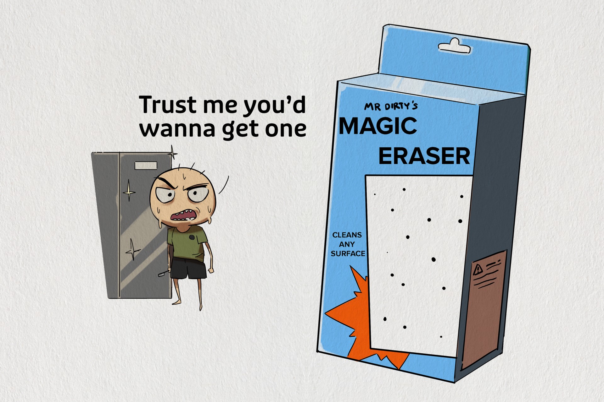 A magic eraser can do wonders when it comes to area cleaning, effectively removing stains and dust from any surface, no matter if it’s the cupboard or window.