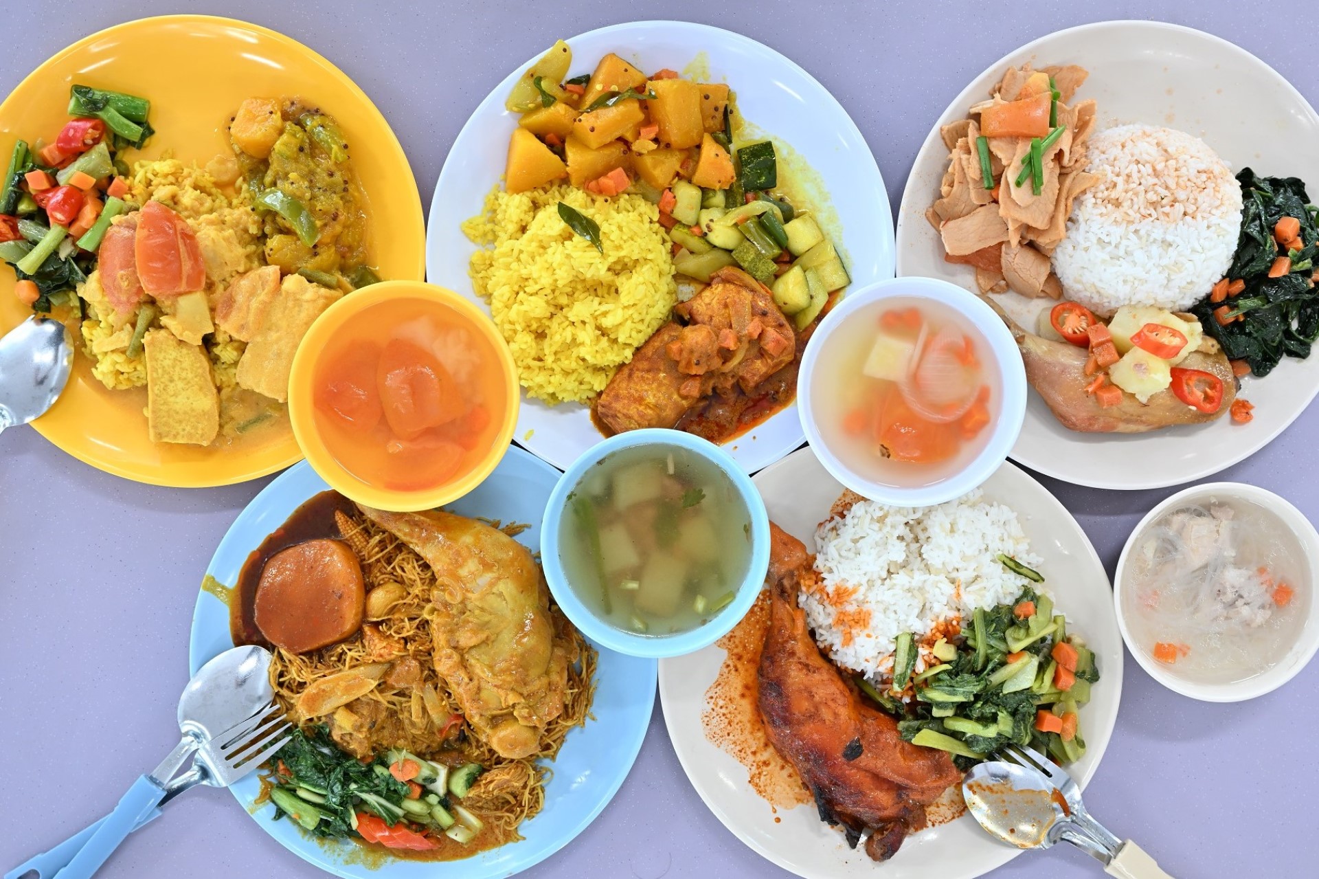 The menu for Indian Vegetarian was briyani rice; tau kwa curry; pumpkin with spice; achar (South Asian pickle); and dalcha (Indian lentil-based stew) soup.