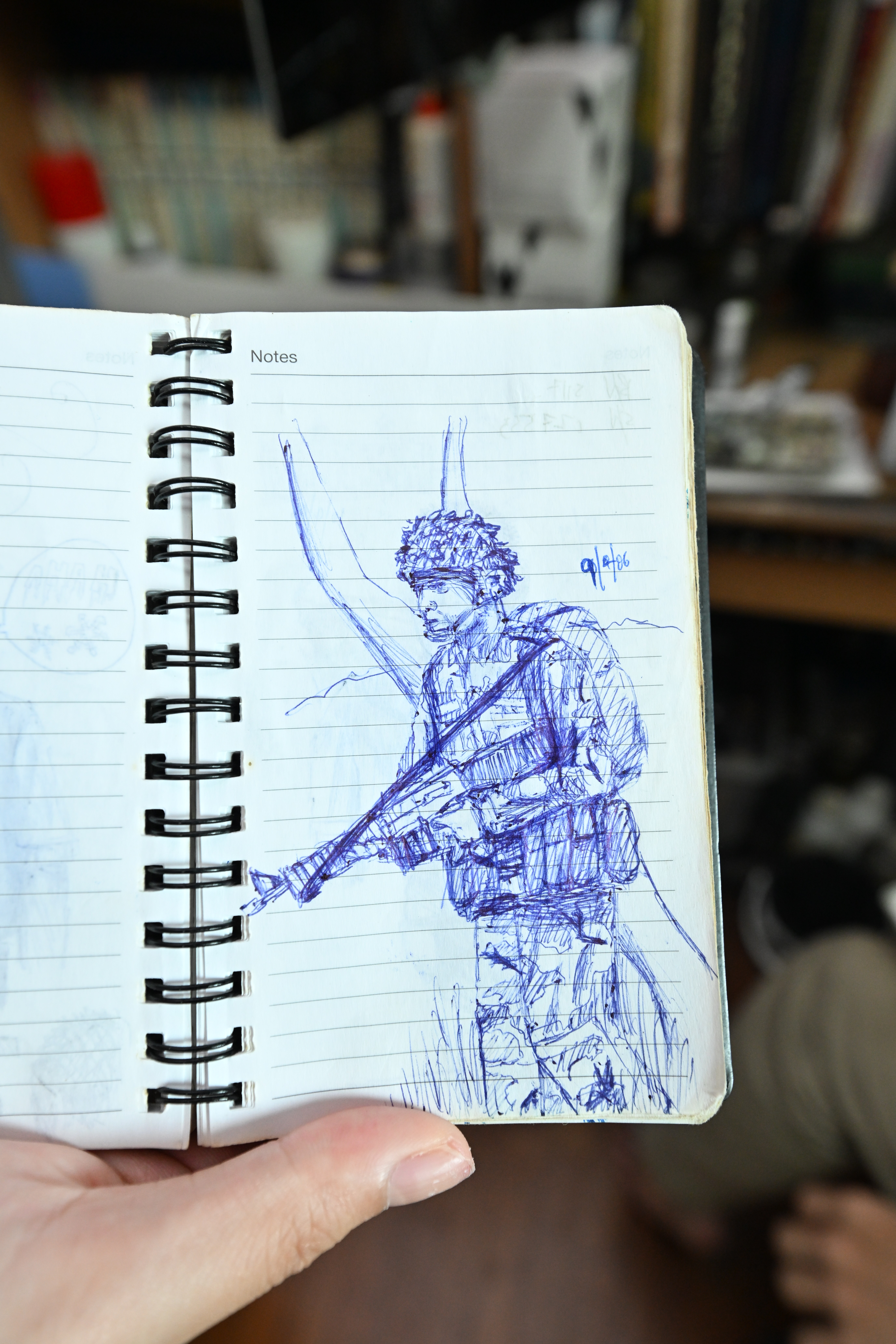 由于Ling一级上士(国民服役)有一份白天的工作,所以他只能在深夜从事自己的艺术热爱,工作日是从午夜到凌晨4点,周末则是半天都在画画。