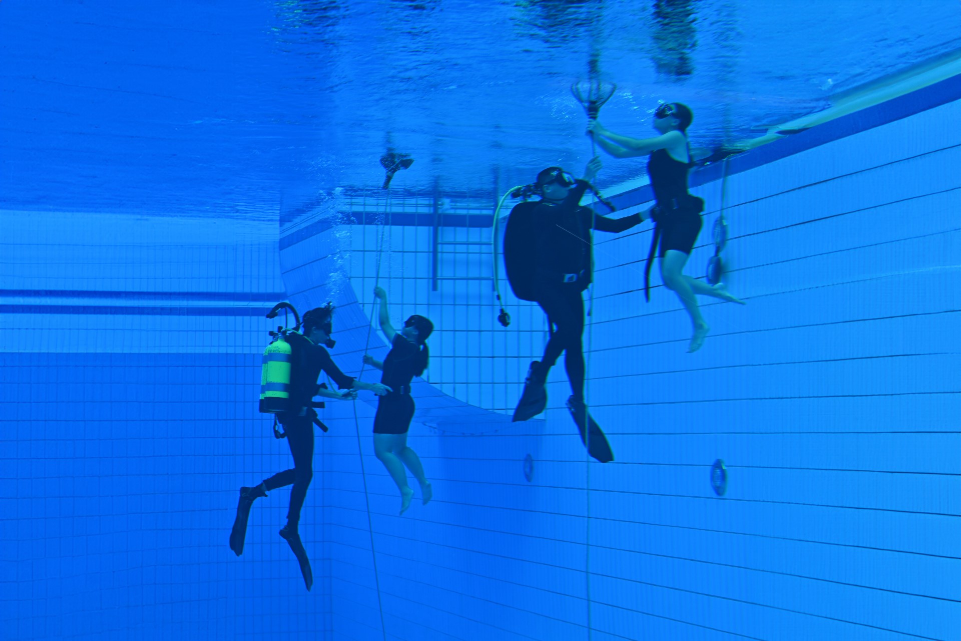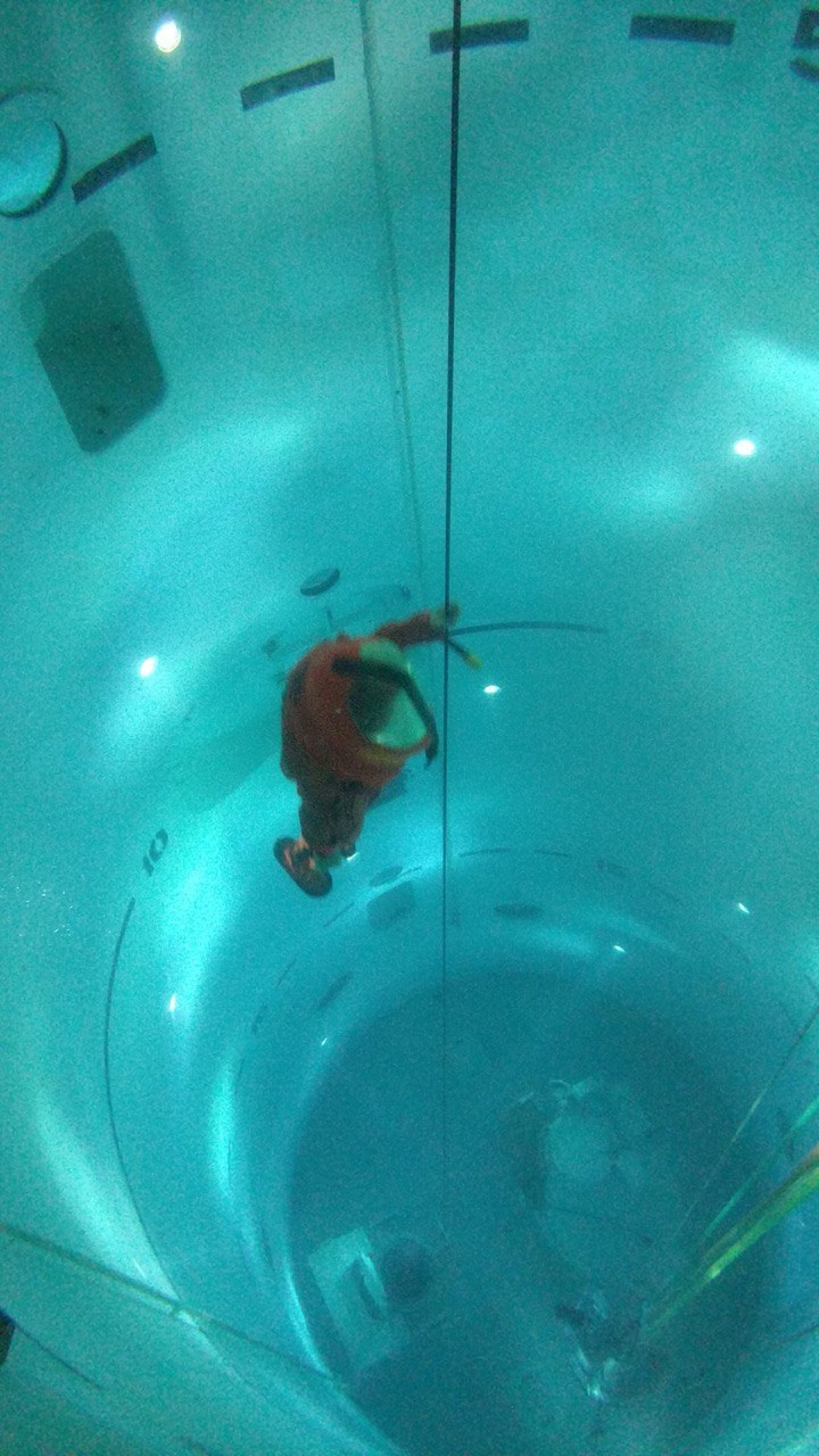 Trainees are also taught to conduct a free ascent, in case there are problems with the suit.