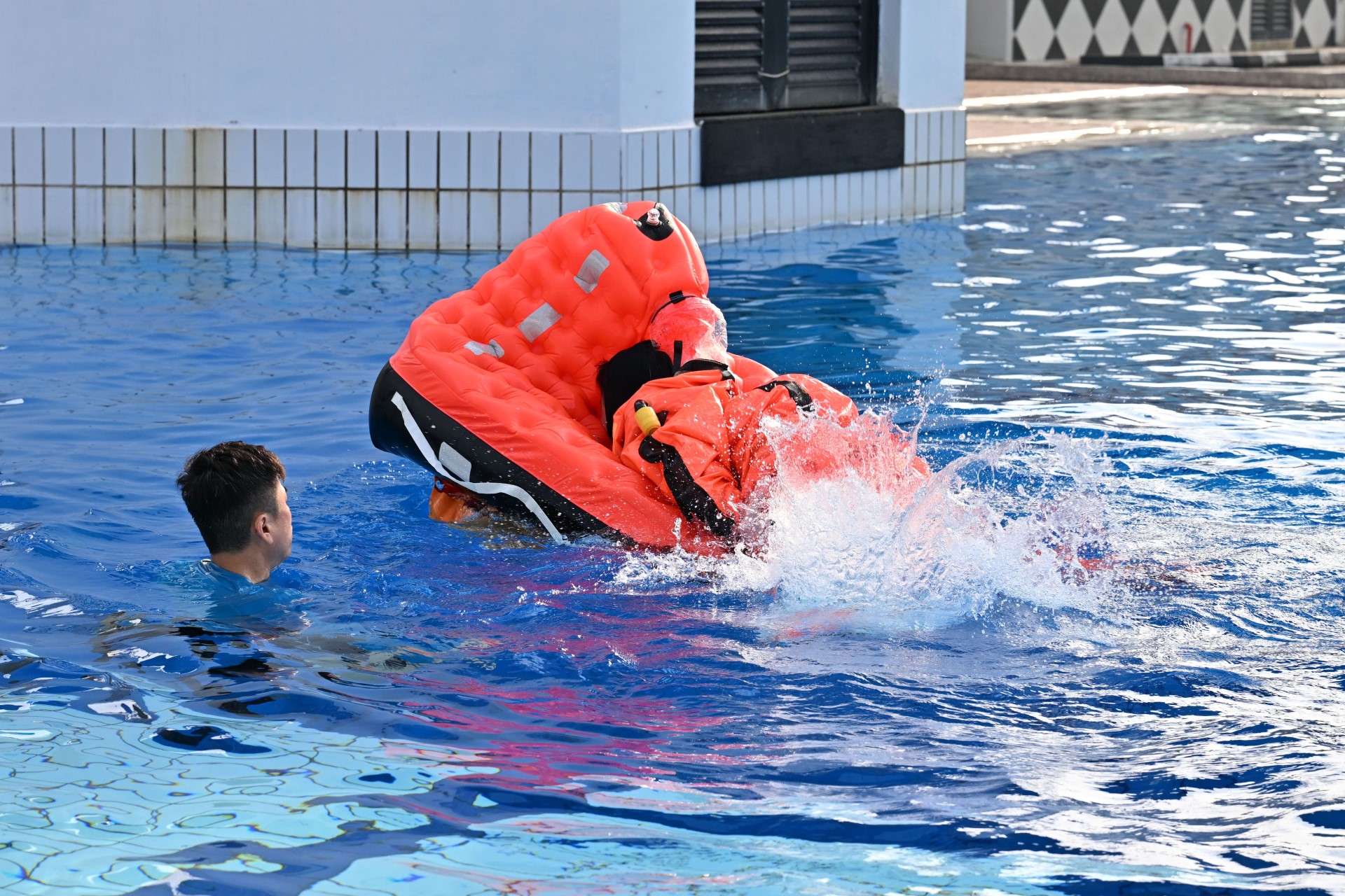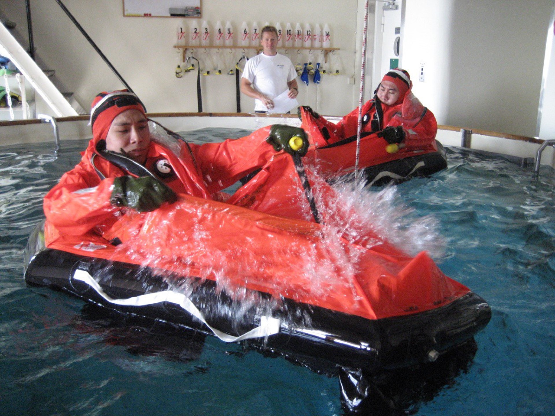 The instructors will also topple the life raft over, teaching the trainees to escape and re-enter the raft when needed.