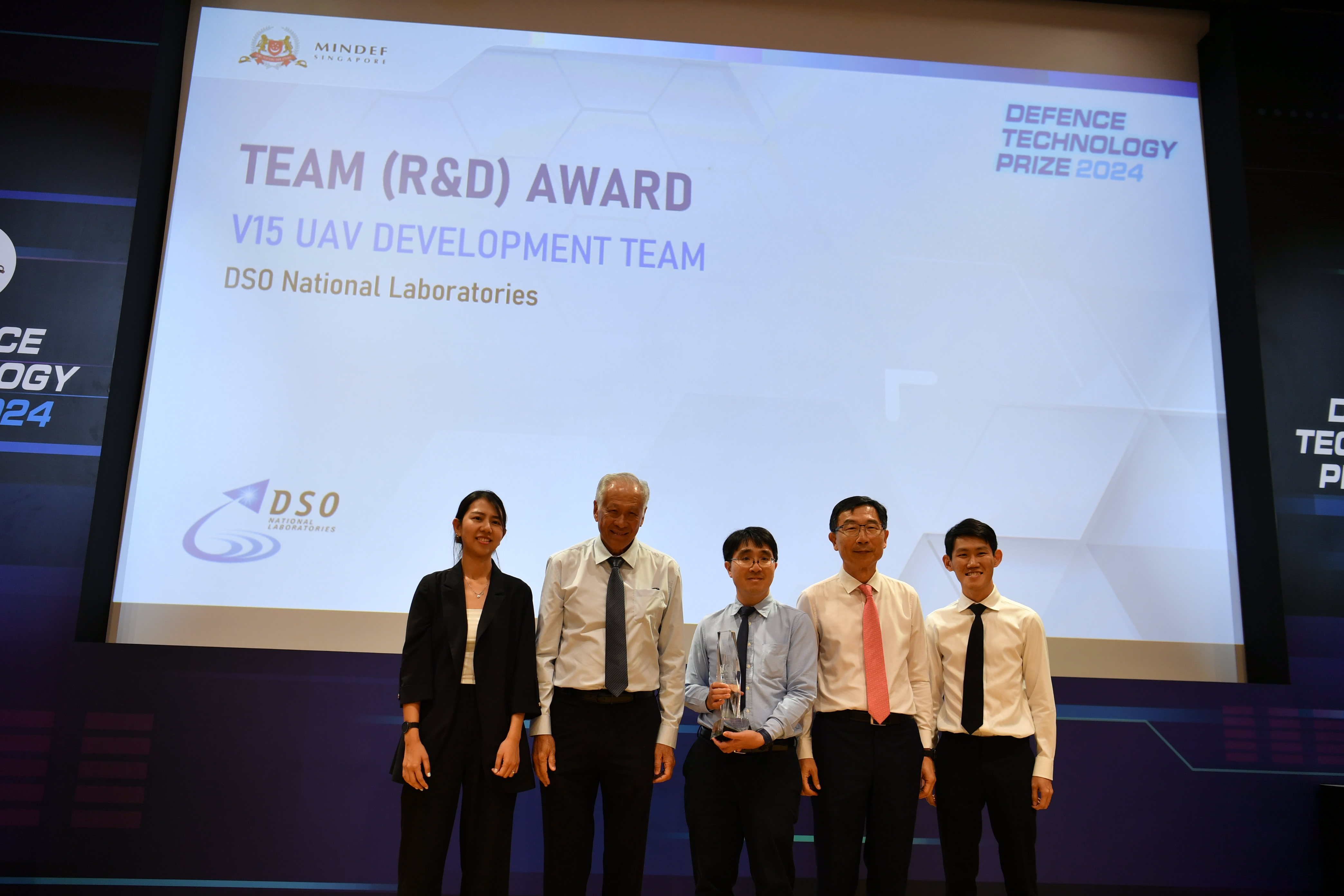 For their innovation, the V15 UAV Development Team was awarded the Team (Research & Technology) Award at the Defence Technology Prize award ceremony on 26 Nov.