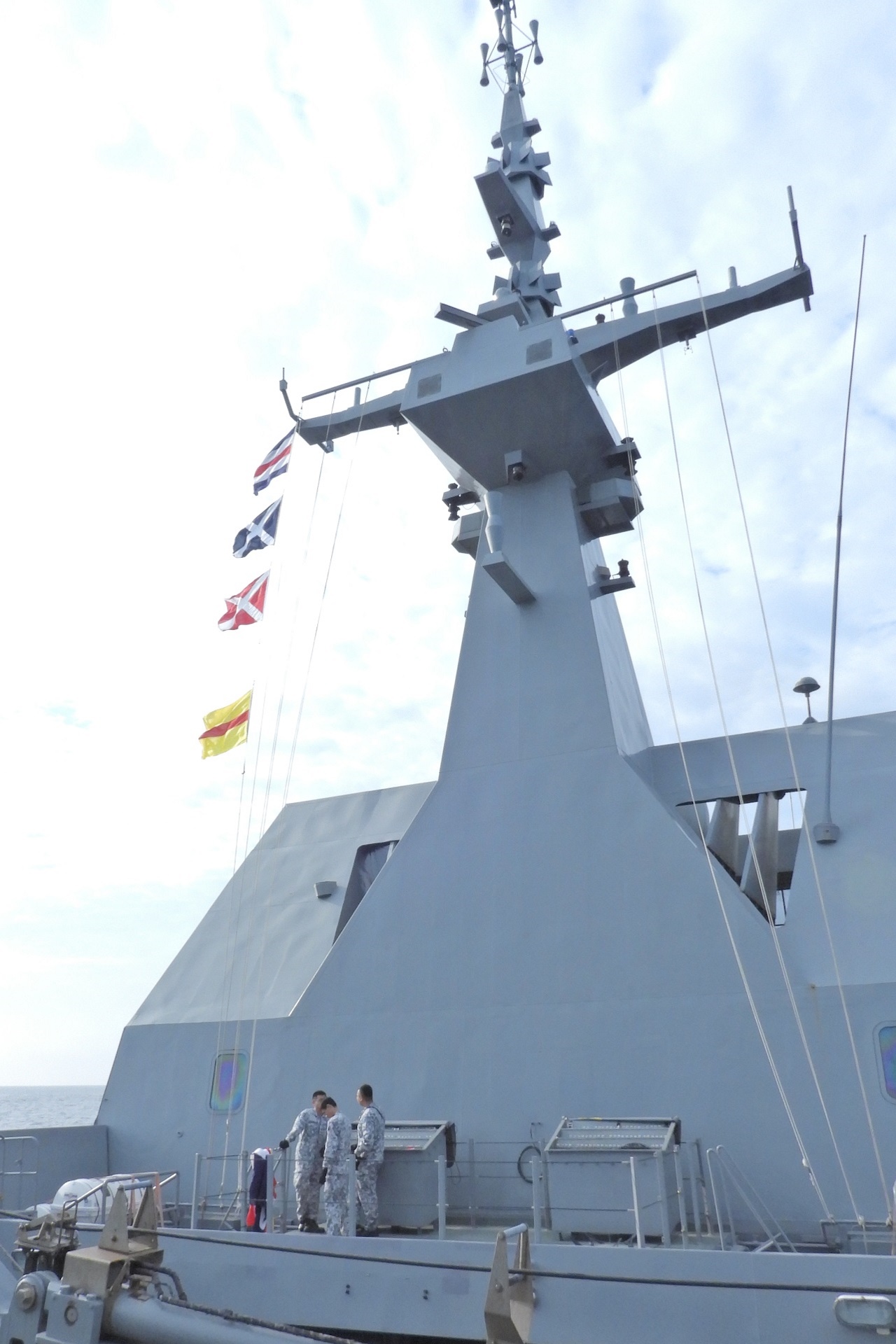 The RSN's Formidable-class frigate, RSS Tenacious, is taking part in the sea phase of the AUMX, as part of a task group together with the Myanmar Navy. Together, they will carry out drills such as manoeuvring exercises and put their communications to the test with flag signals.