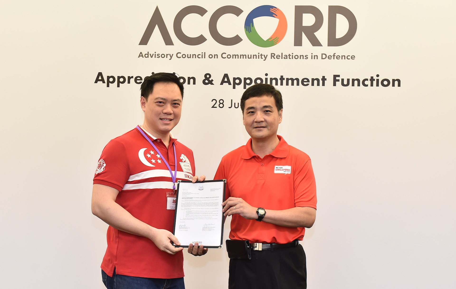 "Since its restructure in 2014, ACCORD has helped MINDEF (Ministry of Defence) in coming up with new ideas to strengthen support for NS and defence, and, more importantly, putting them into action," said Senior Minister of State for Defence Mr Heng Chee How. He co-chairs the council with Senior Minister of State for Defence Dr Mohamad Maliki Bin Osman.