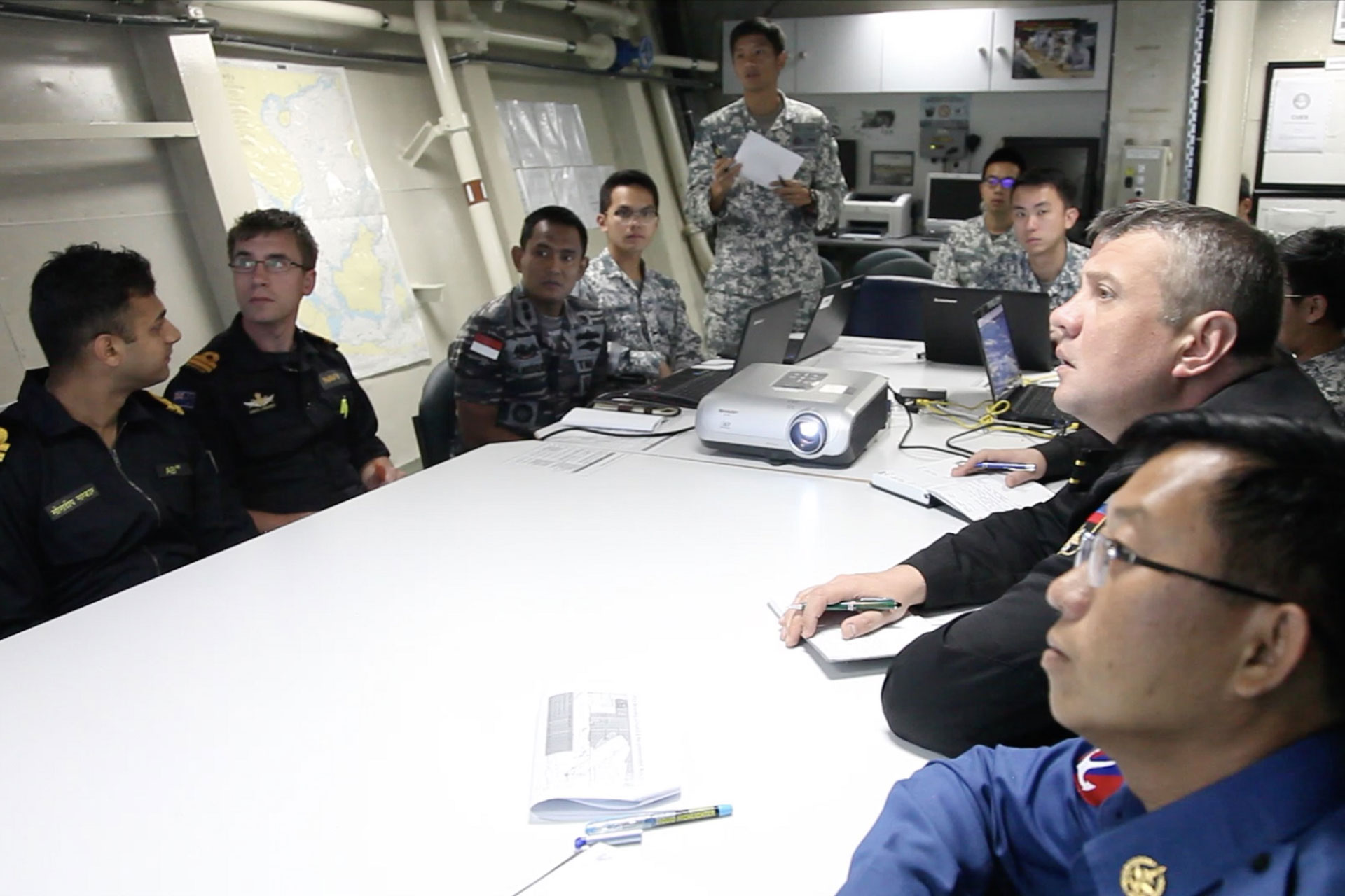 Bertindak atas maklumat yang diterima menerusi latihan perkongsian maklumat yang lebih awal, pasukan menaiki kapal dari angkatan laut Singapura, Brunei, India dan ROK melakukan pencarian di atas simulasi kapal yang dirampas.