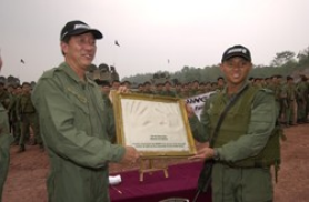 At the commissioning, Mr Teo presented a memento to Major (MAJ) David Lee, Commanding Officer of 42nd Battalion, Singapore Armoured Regiment, to commemorate the battalion becoming the first network-enabled armoured battle group.