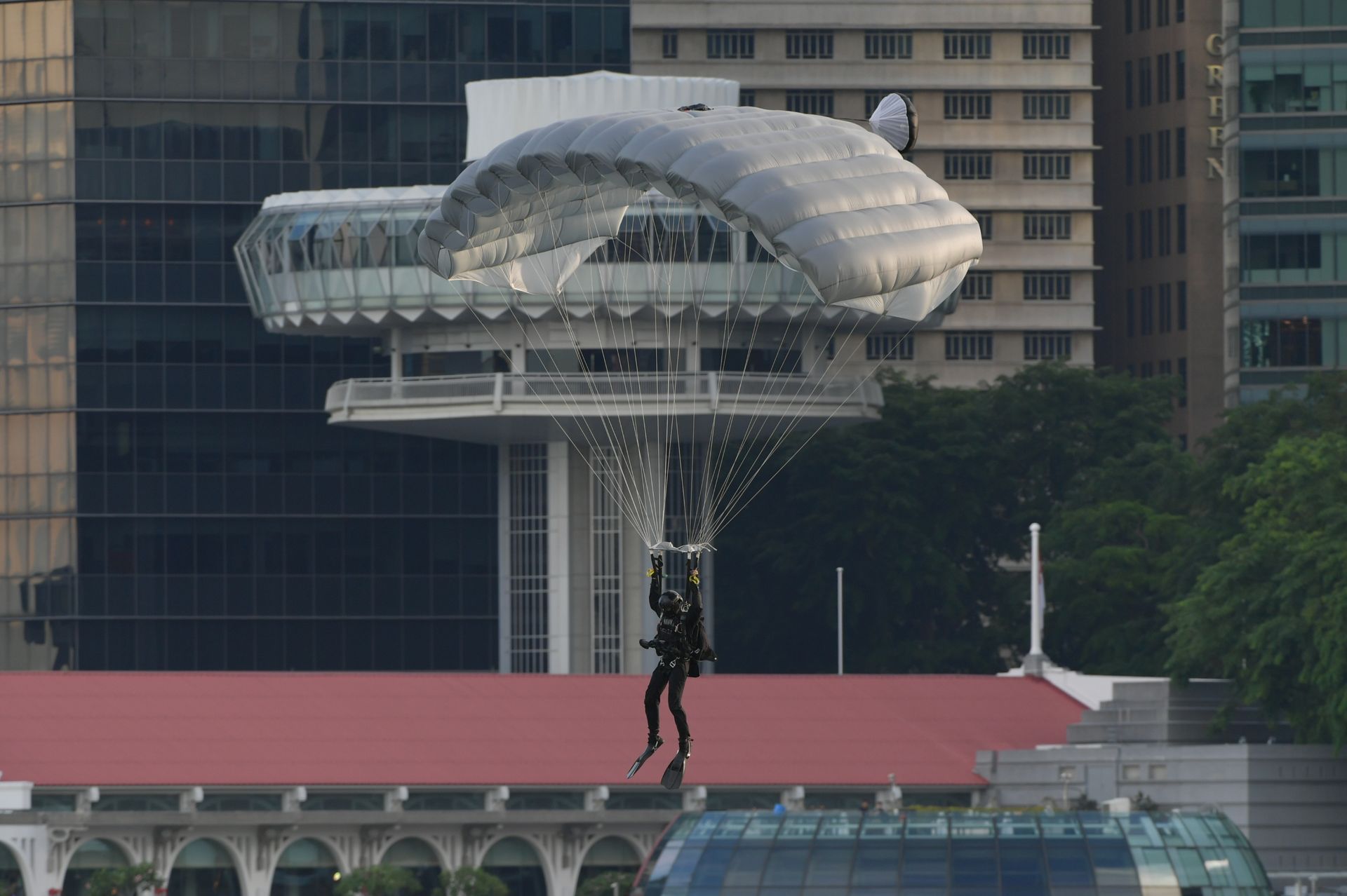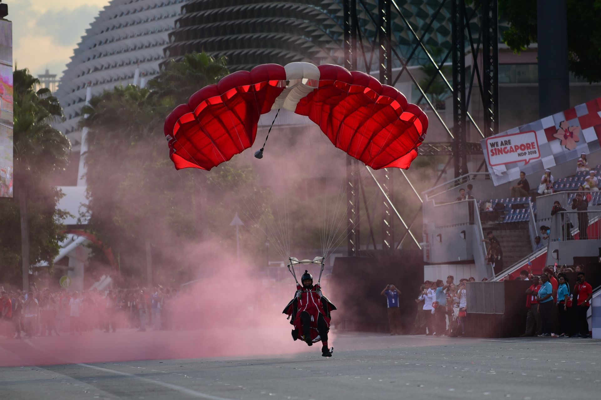 "Instead of appearing in a straight column, we will jump from approximately 3km away (from the Marina Bay Floating Platform), just slightly above Sentosa. As we exit the aircraft, we will fly in instead of freefalling towards the Floating Platform. Once we deploy (our parachutes), the remaining part of the descent would be the same as the previous NDP."