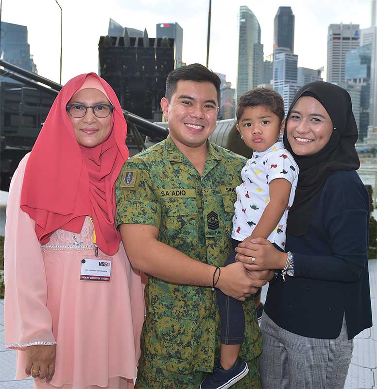 Among the NSman of the Year Award recipients was Master Sergeant (MSG) (NS) Muhammad Sa'adiq Bin Abdul Majid. The 32-year-old Company Sergeant Major from 1st General Support Transport Battalion said he was grateful for the strong family support he received whenever he went for In-Camp Training (ICT).