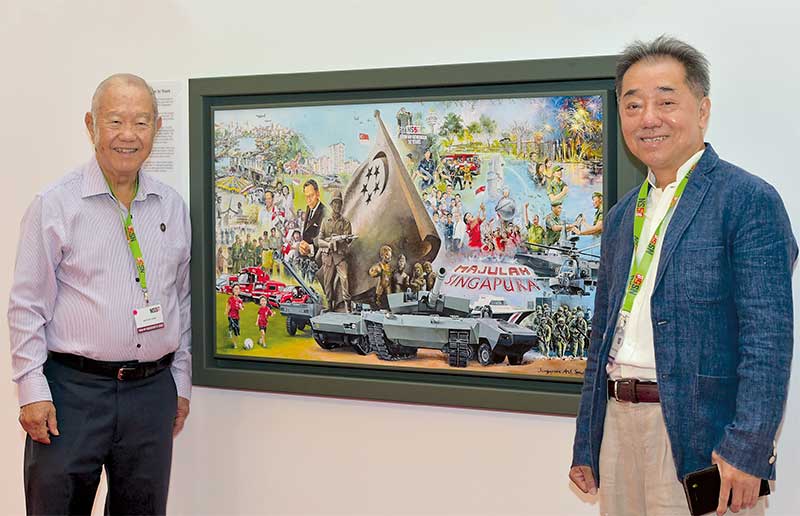 In recognition of their dedication to NS, Mr Lee presented NSman of the Year Awards to 28 NSmen from the SAF and Home Team. He also put the finishing touches on an NS50 commemorative painting, which was part of a ground-up initiative by the Singapore Art Society and ST Engineering.
