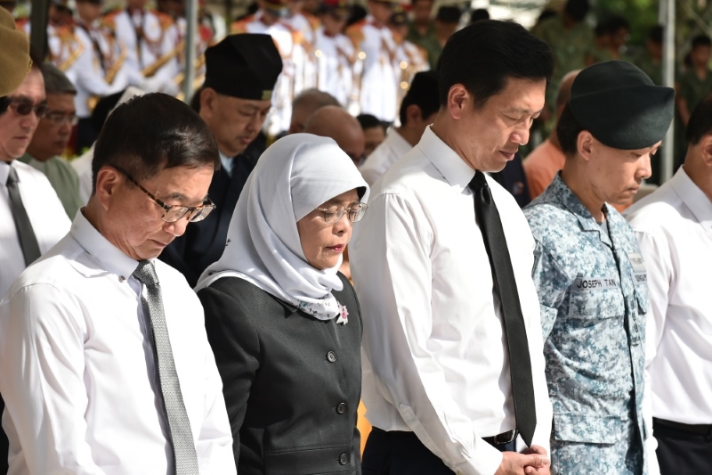 She was speaking to some 1,000 attendees, including those from diplomatic corps, schools and the Singapore Armed Forces (SAF) Veterans' League, who observed the ceremony at War Memorial Park.