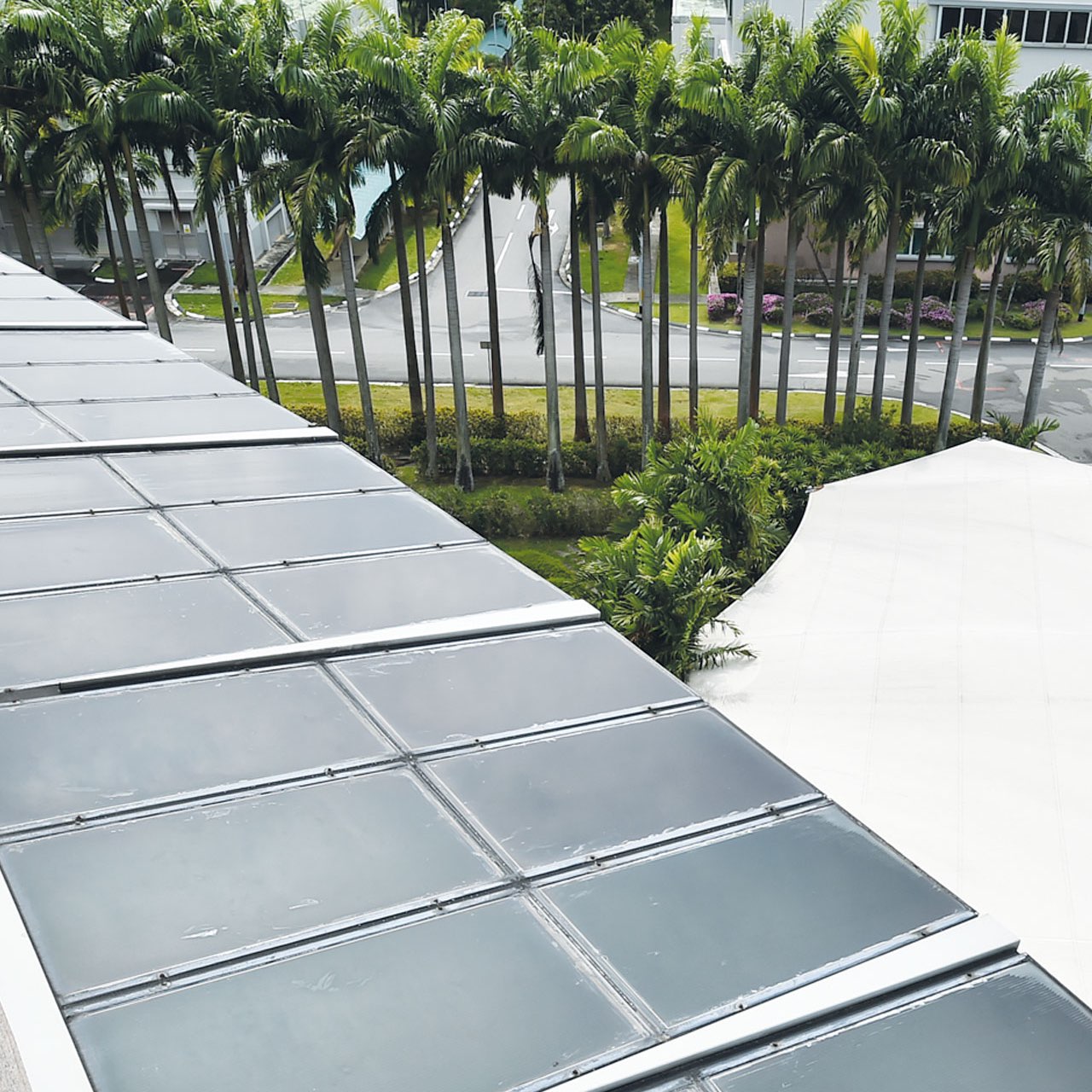Other features of the building include solar panels and solar pipes. The former is sufficient to power all the air-conditioning units and LED lights in the building, while the latter directs natural light into the facility to reduce the need for electrical lighting.