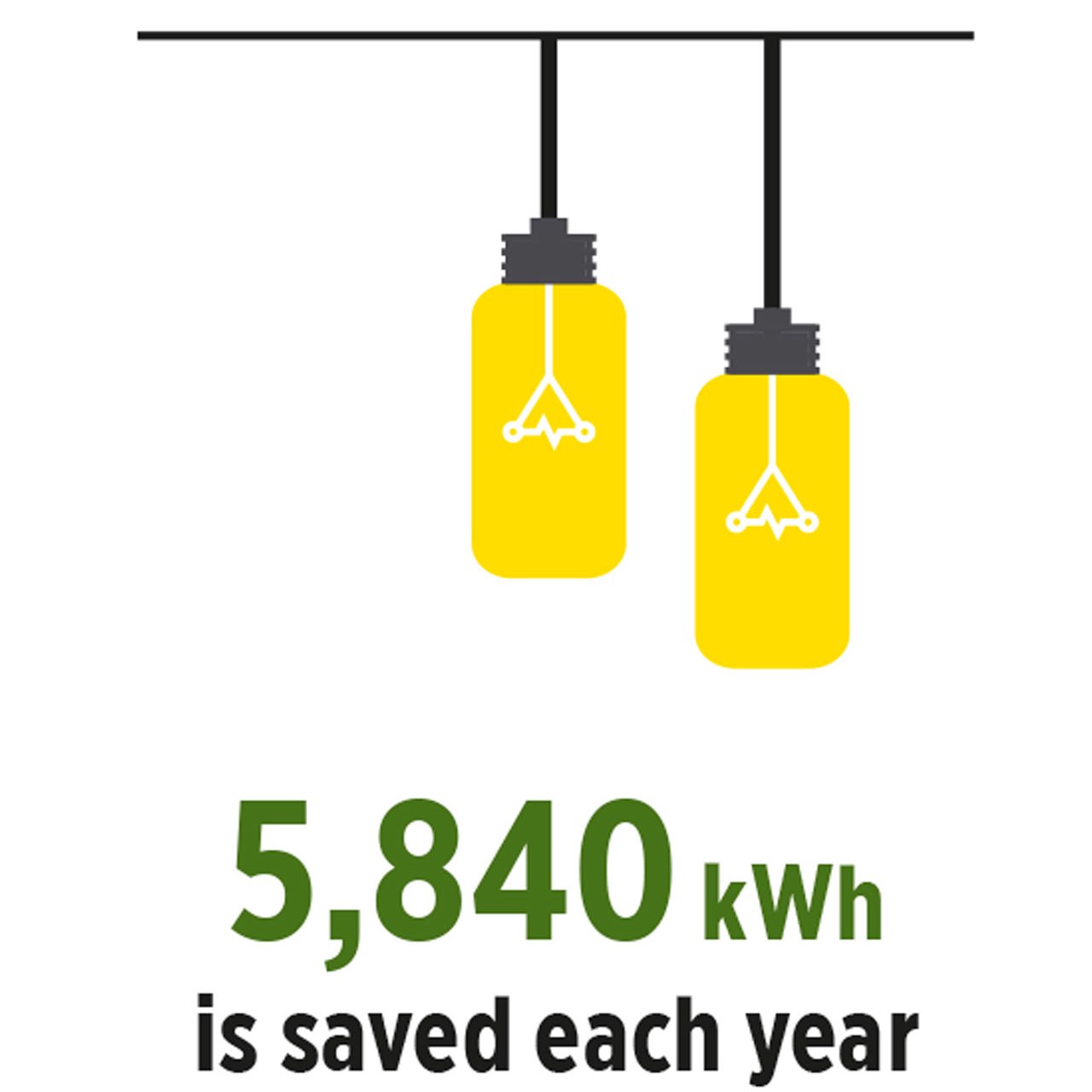 Motion sensors in toilets reduce the use of lights, resulting in savings of 5,840kWh per year.