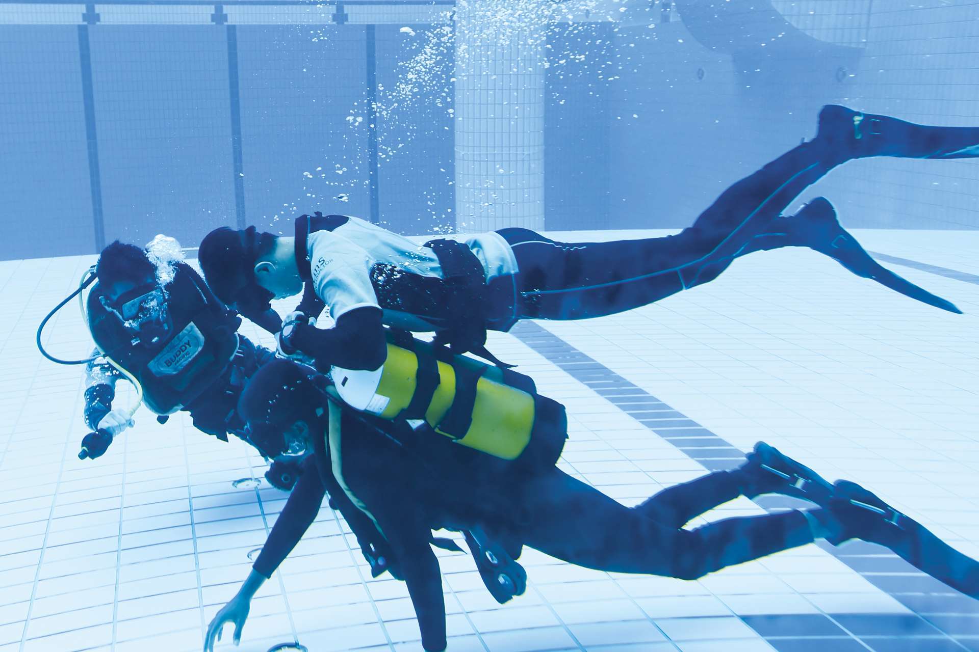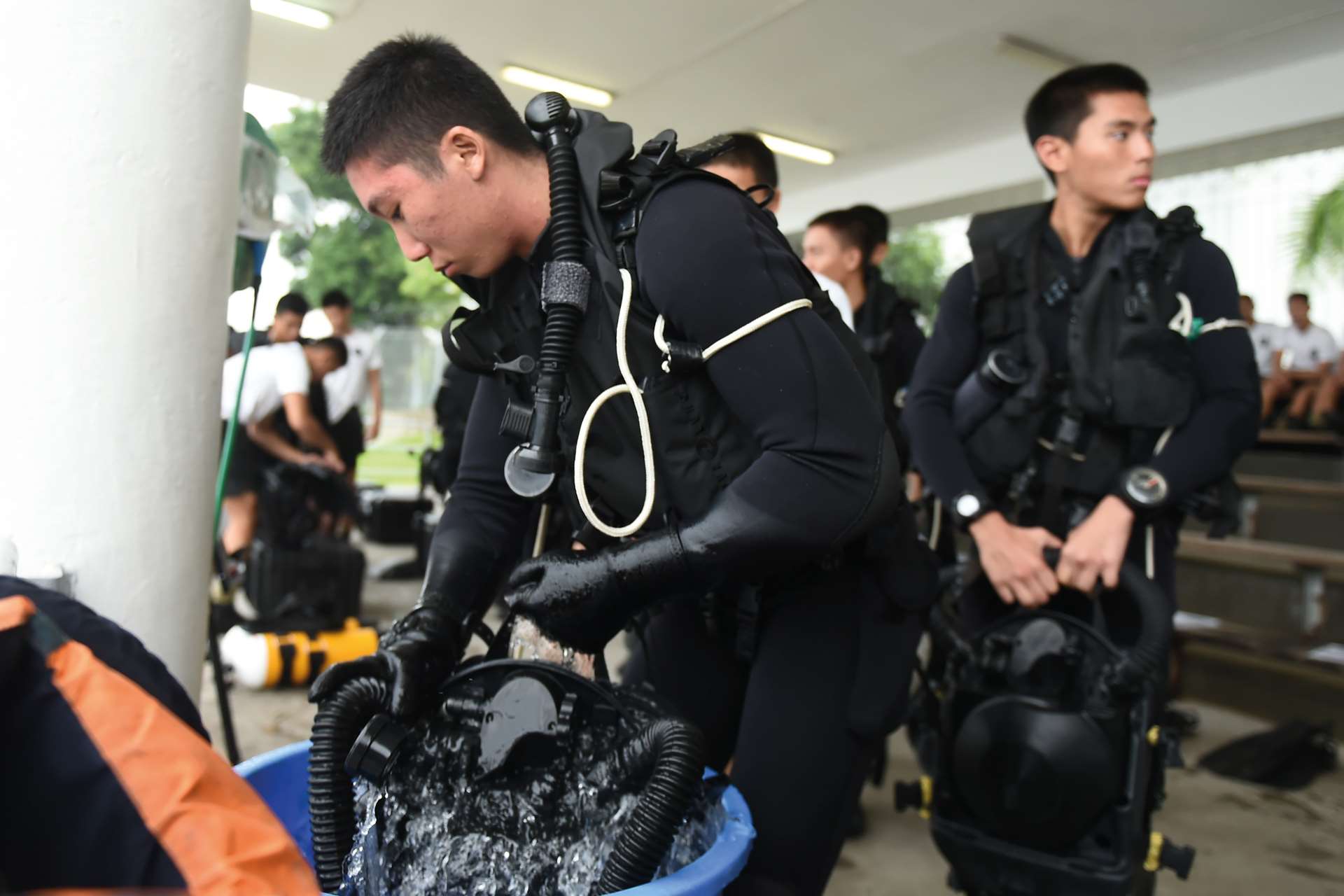 Before earning their fins, all trainees go through the Combat Diver Course (CDC). During these 20 weeks, they will undergo rigorous physical training, build water confidence through drown-proofing, learn land combat and specialised diving skills, as well as go through a five-day Team Building Week.