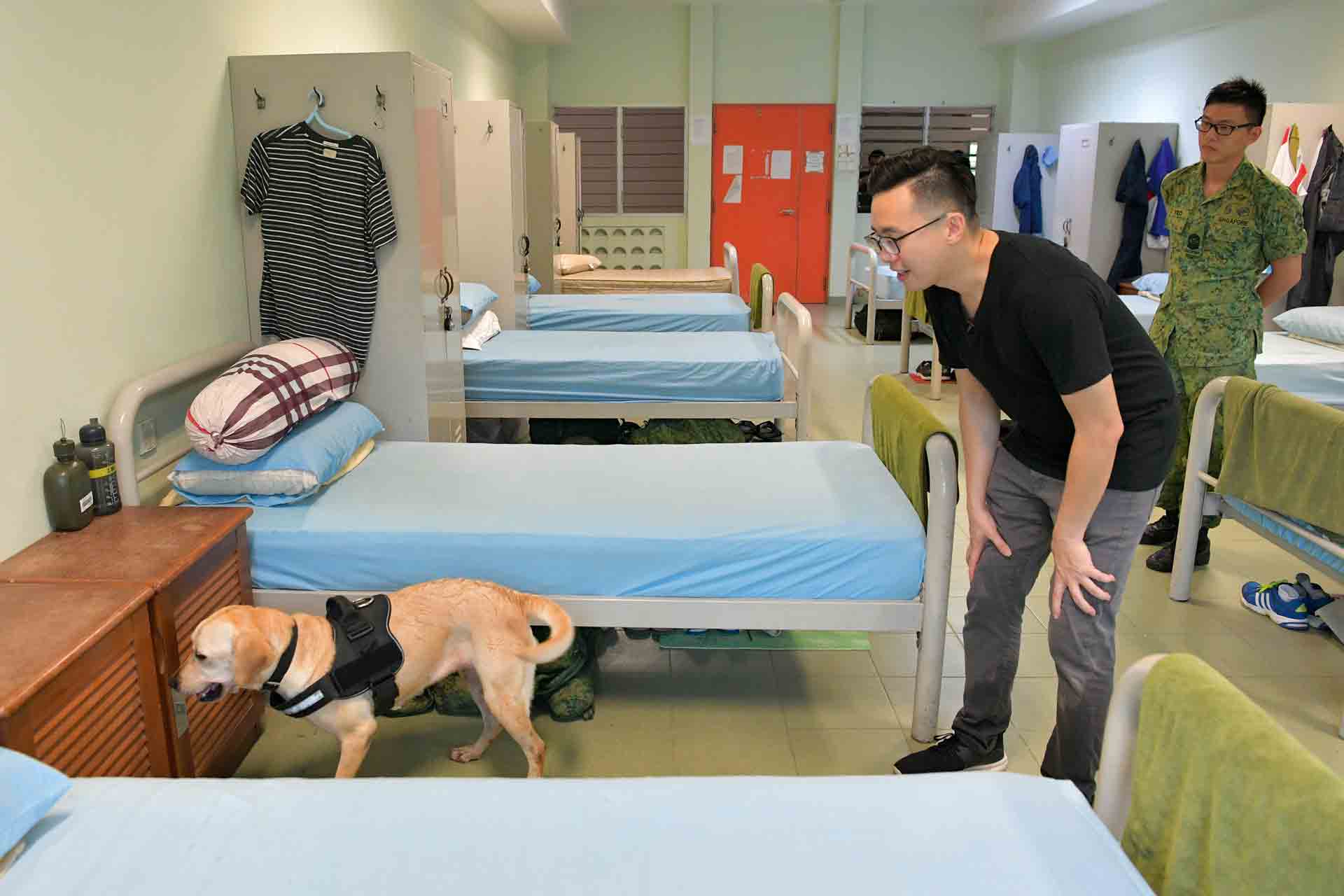 Pengajar saya ialah Master Sarjan (MSG) Yeo Zong Zhe, 29, Pegawai kedua latihan dalam MWDU. Tugas pertama pada hari tersebut adalah menguruskan najis anjing — membuang najis dan membersihkan rumah anjing. Pengendali anjing bertanggungjawab terhadap persekitaran hidup dan kebersihan anjing.