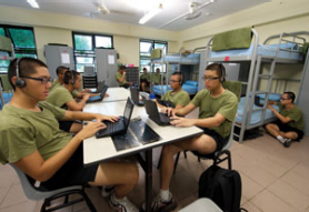 Each bunk now boasts a charging and storage rack for the recruits ultra-mobile personal computers, which allow them to access LearnNet and the internet.