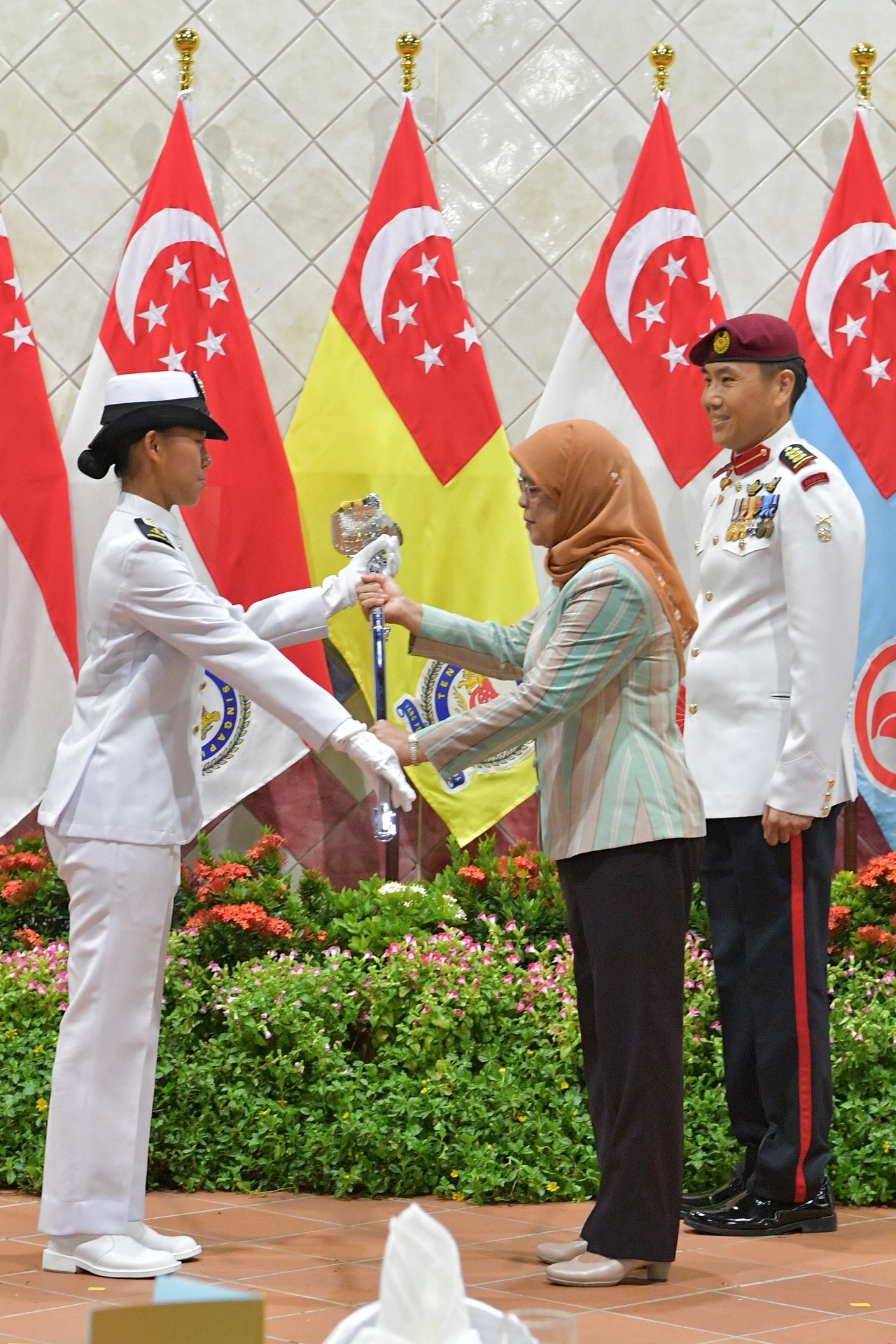 In concluding her speech, President Halimah reminded the new officers of their responsibility in protecting the nation. "Remember that the defence of Singapore's independence and sovereignty lies in your hands, and you must do your utmost to protect this."