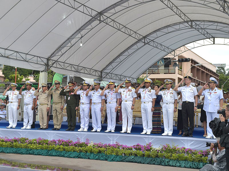 The IFR included a 19-gun salute by Cannon-class Escort Destroyer HTMS Pinklao and flypasts by Royal Thai Air Force aircraft.