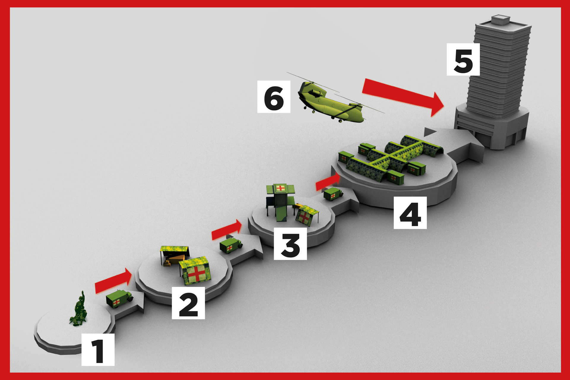 The Army Medical Services' 3rd Generation Army Medical Support System provides medical support for soldiers in the battlefield. The five-step system ensures that casualties receive medical attention at every juncture and have the best chances of survival and recovery.