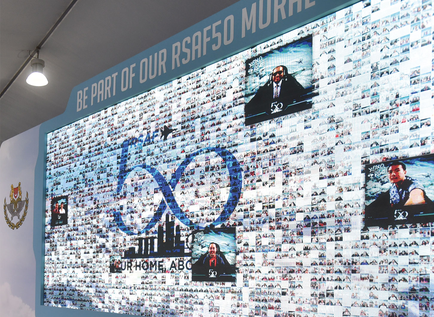 The public can show their support for the Air Force by contributing to the RSAF50 Mural. Visitors get to choose from six animated backgrounds — such as inside a fighter jet cockpit — to take their photos against.