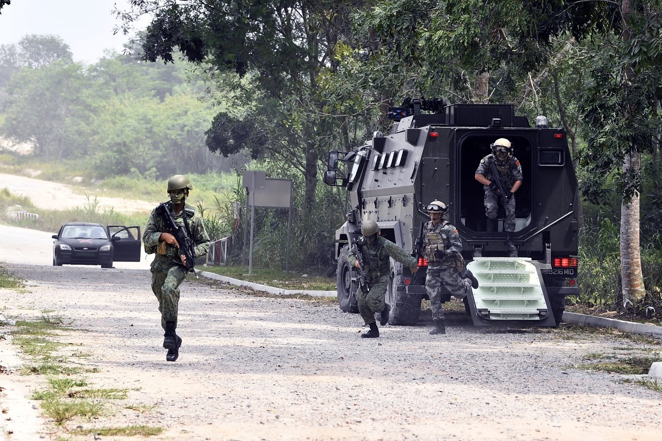 The counter-terrorism drill was played out at the Murai Urban Training Facility on 5 Aug.