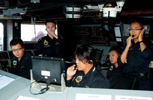 "One of the challenges we faced in the beginning was learning and becoming familiar with the different terms that Navy personnel use. For example, when we are identifying a direction, we might say '12 o'clock' but for the navy, it's '90' because they describe it in degrees," explained First Sergeant (1SG) Sim Cher Chian, Team Second-in-Command from the Army.