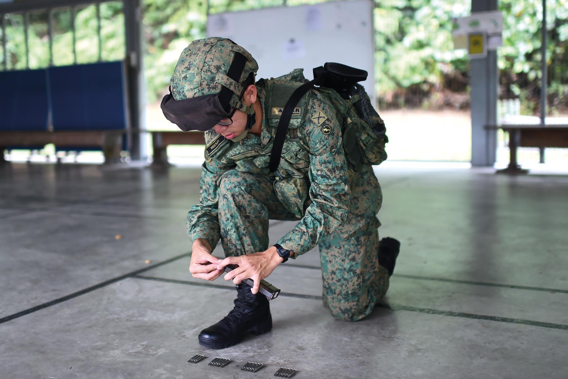 Soldiers who have been on standby duty would have gone through the slow process of loading their Singapore Assault Rifle 21 magazine. On average, it takes about two minutes to fully load the magazine with 30 rounds. And depending on the nature of the mission, each soldier has to load two to four magazines.