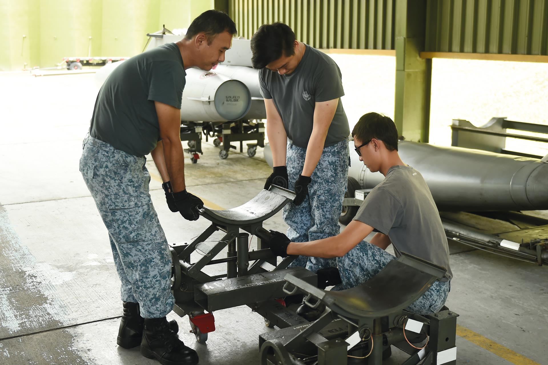Preparing a fighter aircraft like the F-15SG for a mission is a high-tempo operation. The engineers have to load the missiles onto the aircraft in the shortest time possible.