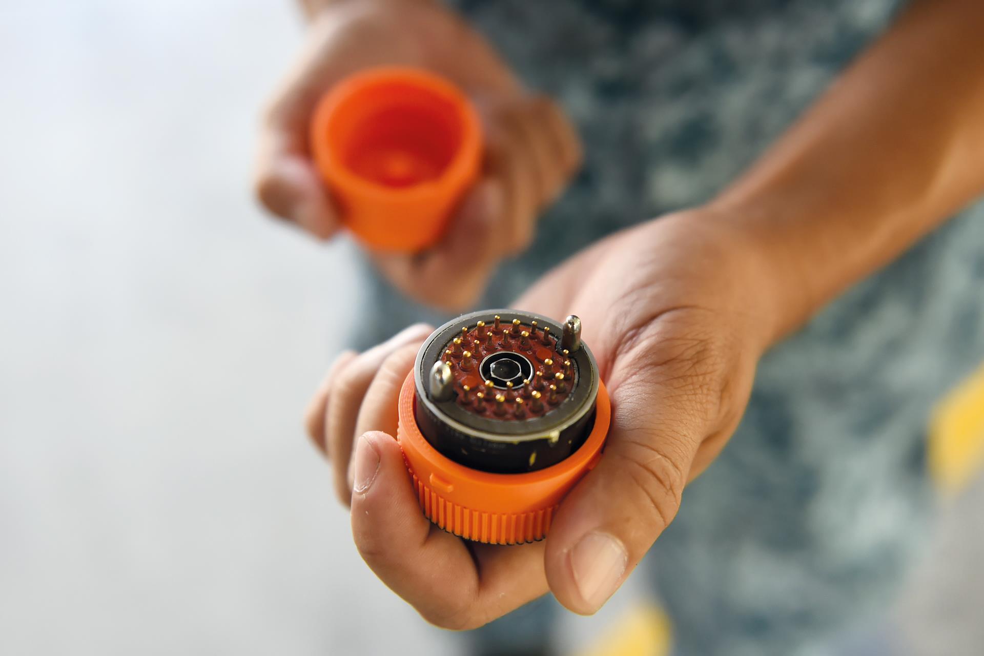 Today, the engineers in his squadron use a durable plastic case that is customised to fit and protect the missile buffer. Created using 3D-printing technology, the case can be screwed tight and has a threaded surface that helps to prevent slippage.