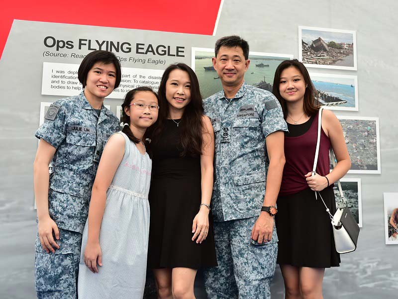 Ms Jessie Lee was excited to bring the generations of soldiers in her family from across the Services together to the event. Her husband, Major (MAJ) (NS) Jeffery Lim, a Weapons System Officer in the Republic of Singapore Air Force (RSAF), was a former regular while his father, MAJ (Ret) Richard Lim, was an infantry officer. MAJ (NS) Lim's younger brother, Corporal First Class (CFC) (NS) Desmond Lim, served his NS in the Republic of Singapore Navy (RSN).