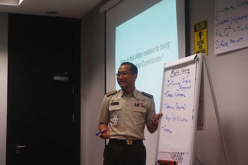 The programme, held at the RBAF Defence Academy in Brunei, was facilitated by Deputy Head CLD Senior Lieutenant Colonel (SLTC) Daniel Siew and his staff officer 1st Warrant Officer (1WO) Jerry Soh. It was designed to introduce approaches to becoming effective military leaders. Head CLD Colonel (COL) Fred Tan joined the team on the third day of the programme to share his reflections on Command and Command Philosophy.