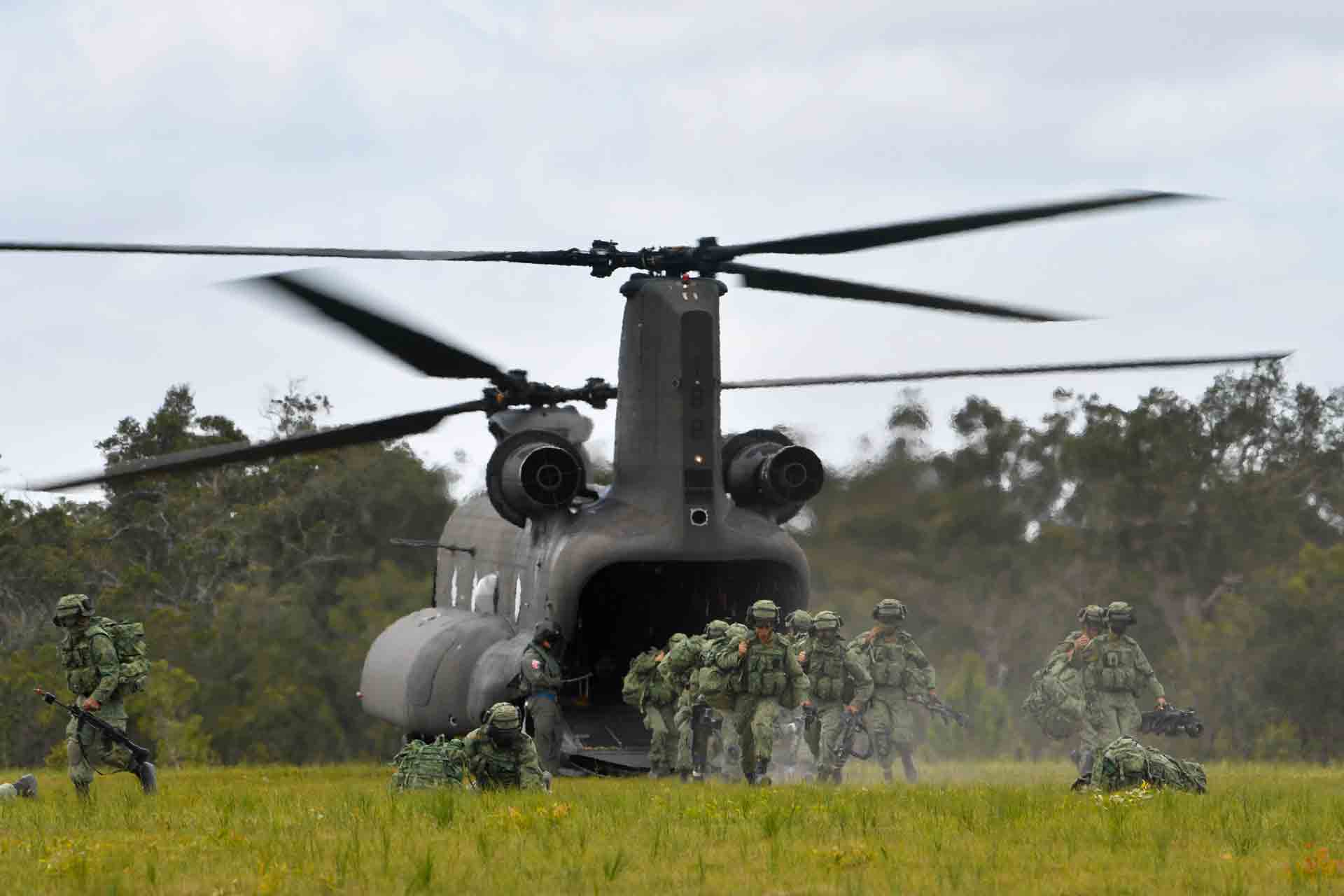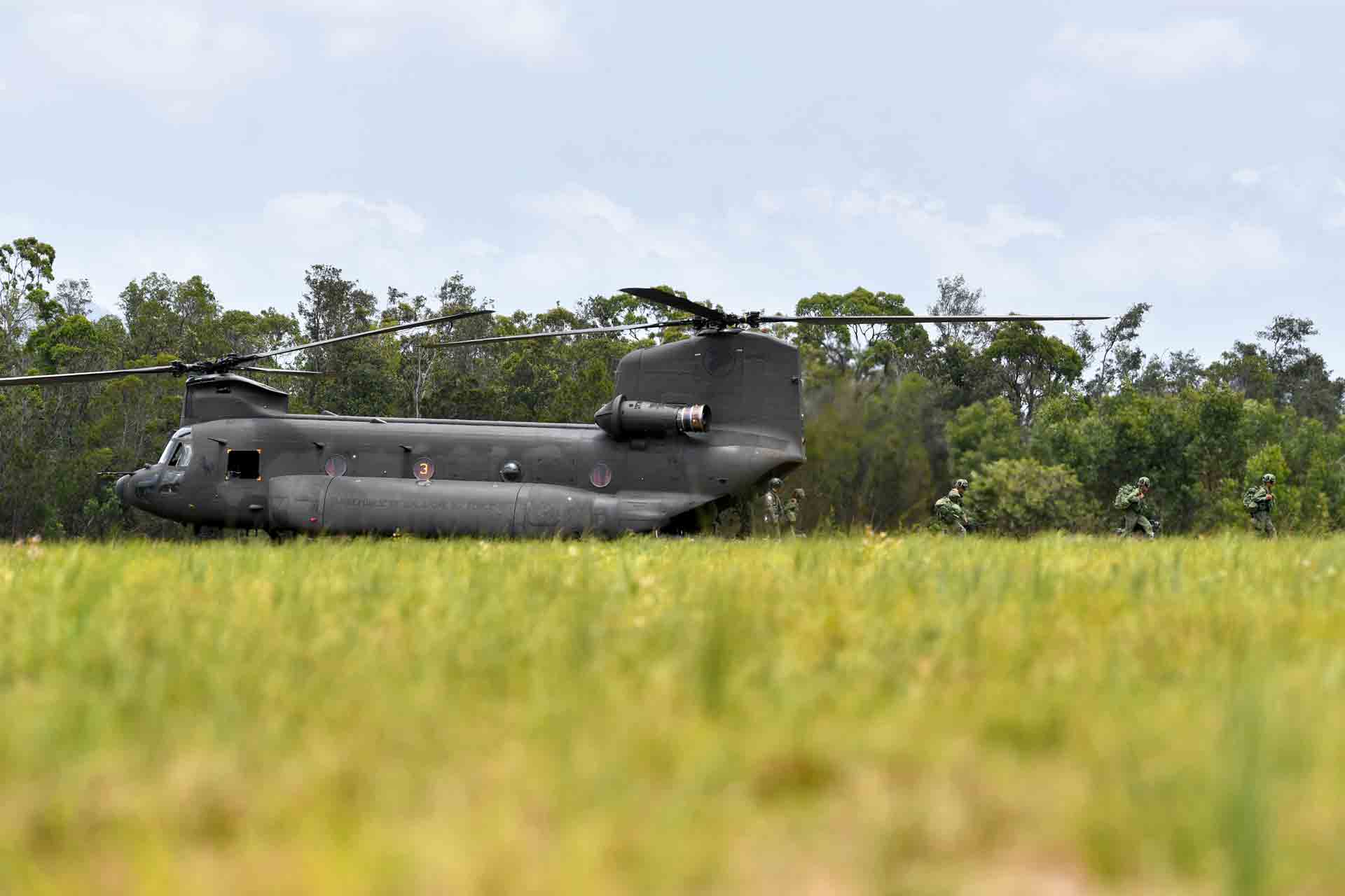 In her keep are soldiers from the Singapore Army and Australian Defence Force (ADF), who were brought in by the Republic of Singapore Air Force's (RSAF's) CH-47D Chinook and AS332 Super Puma helicopters.