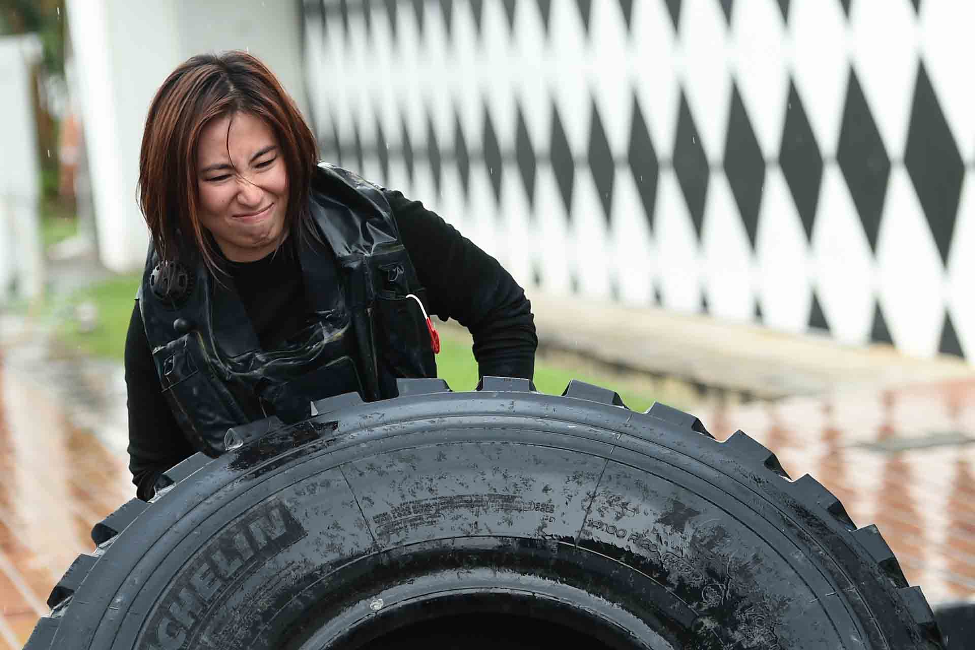 Armed with new-found confidence, I proceeded to the 105kg tyre-lift. Gritting my teeth, I expended my strength but the tyre hardly left the ground.