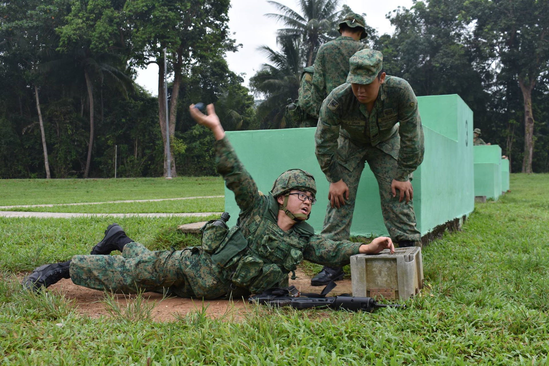 Before recruits throw a live grenade, they must go through theory lessons and practice drills using a dummy grenade.