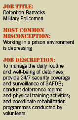 In this second of our six-part series on lesser-known vocations, PIONEER puts the spotlight on the multiple roles Military Policemen (MPs) assume in the Singapore Armed Forces Detention Barracks (SAFDB).