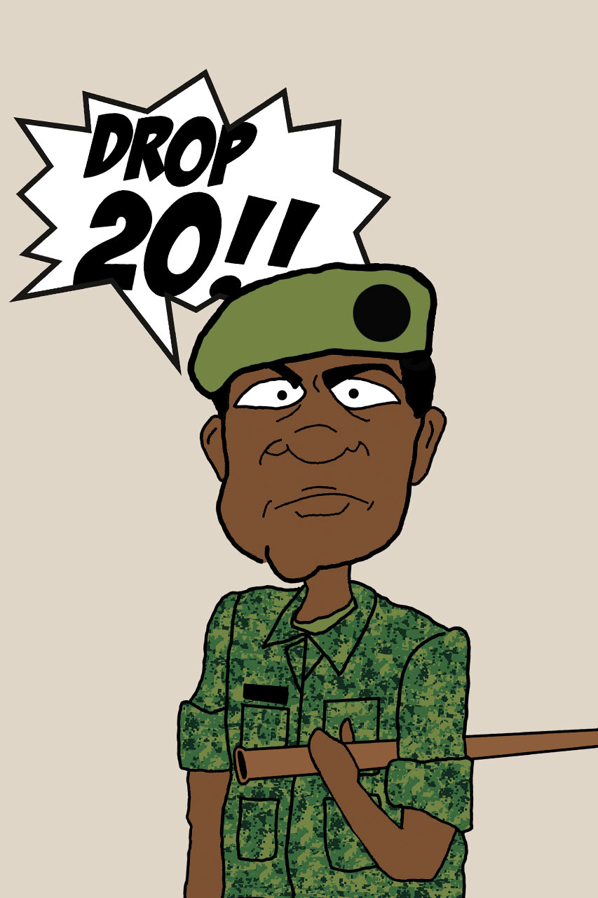 Just like in school, the Discipline Master incites fear in even the toughest recruits. Smart 4 sleeves rolled up to the wrong height? "Drop 20!" Sloppy drills? "Semula!"