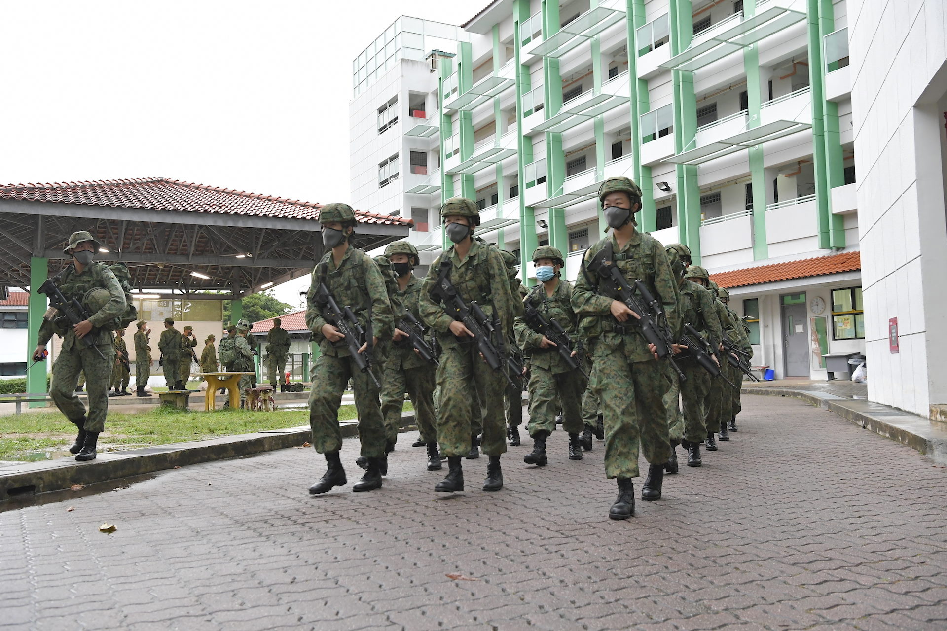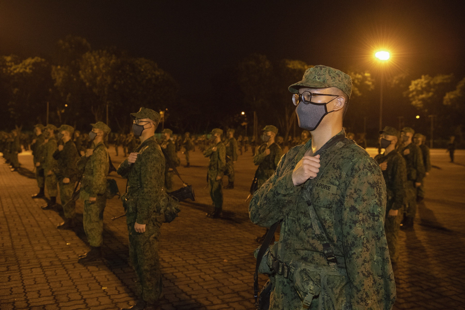 The march, typically held from Changi to Marina Bay since 2010, is now conducted back on Pulau Tekong as part of measures against COVID-19.