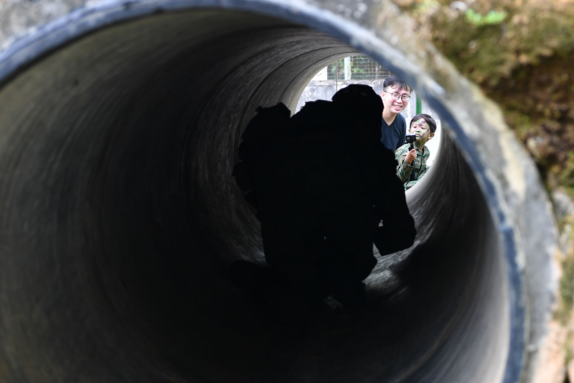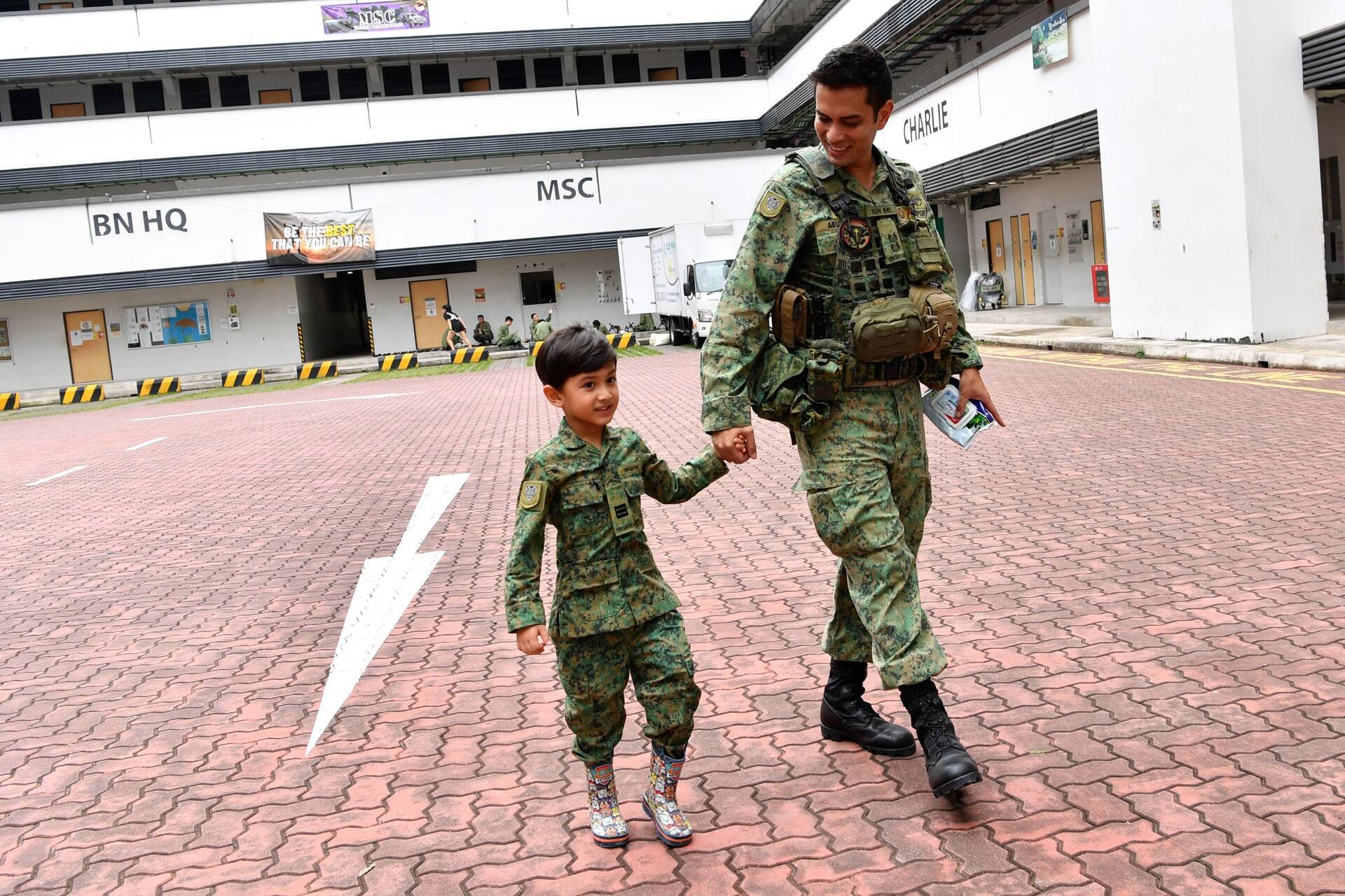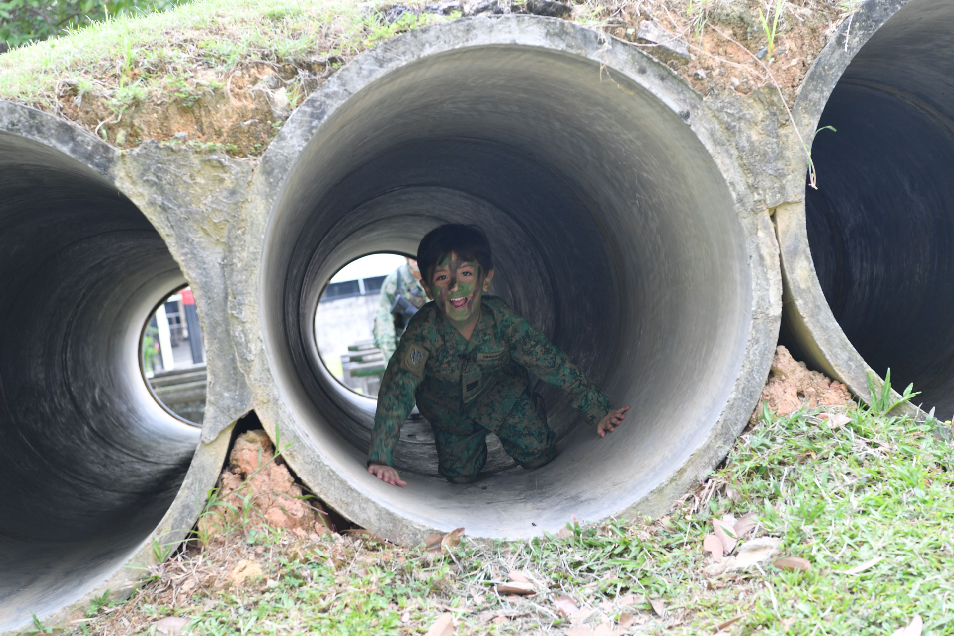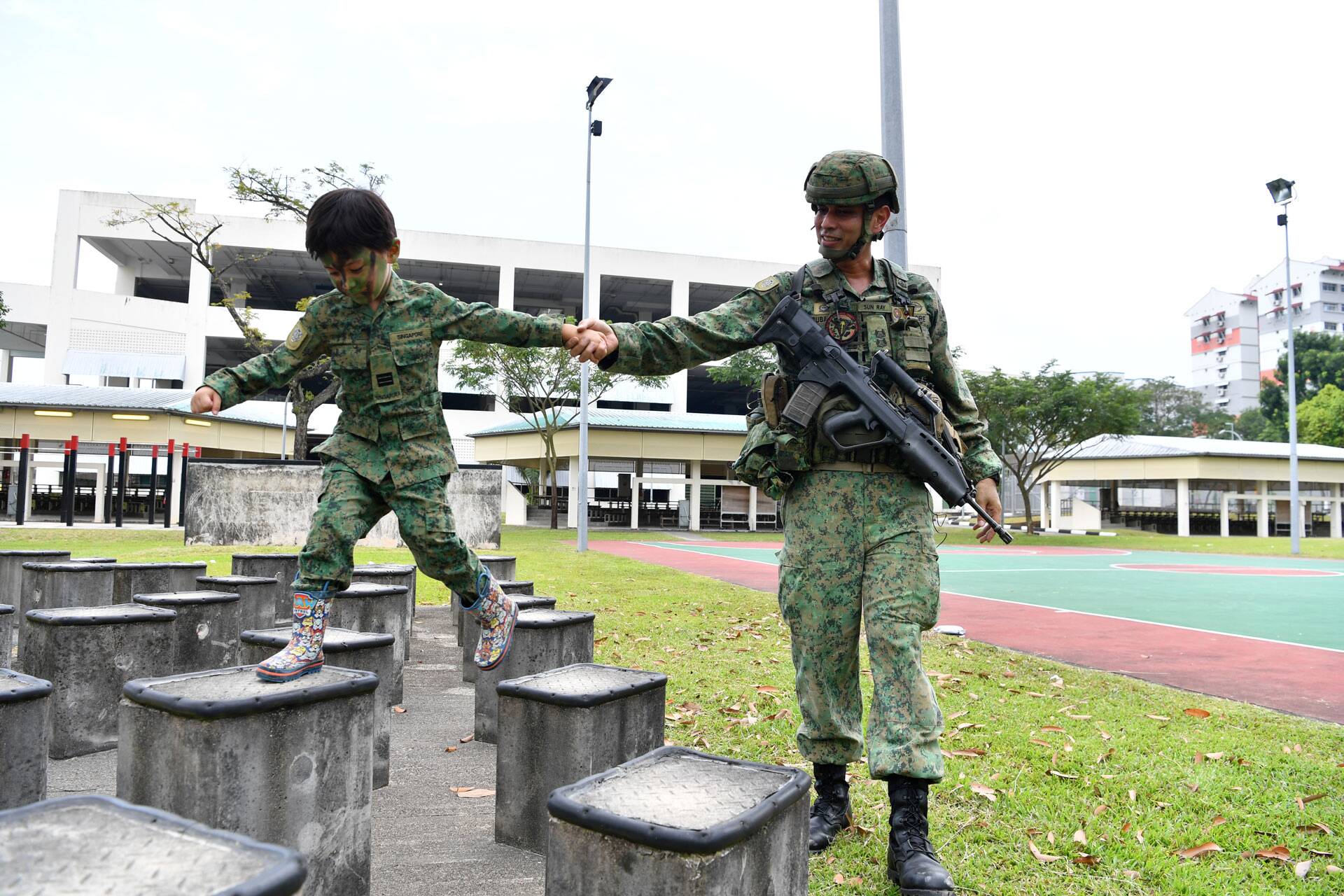 LTC Abu Bakar, Commanding Officer of 5 SIR, brought his son Adam to his unit for some hands-on with the Standard Obstacle Course, camo cream and the SAR 21 in the last of this year's PIONEER Kids series.