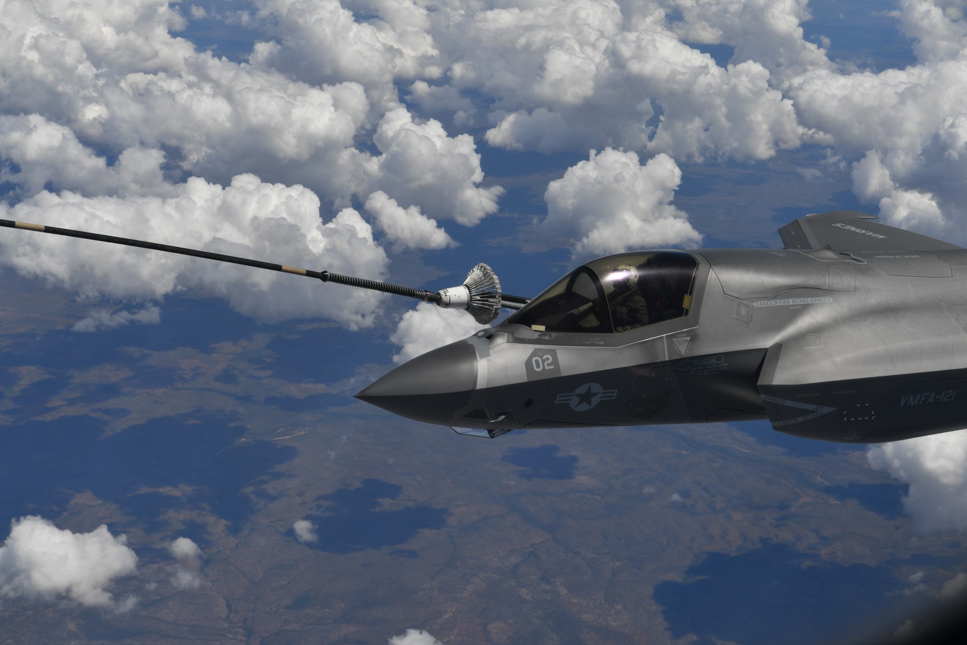 空军部队空中添油机在"黑暗行动"演习中为 F-35BS添油